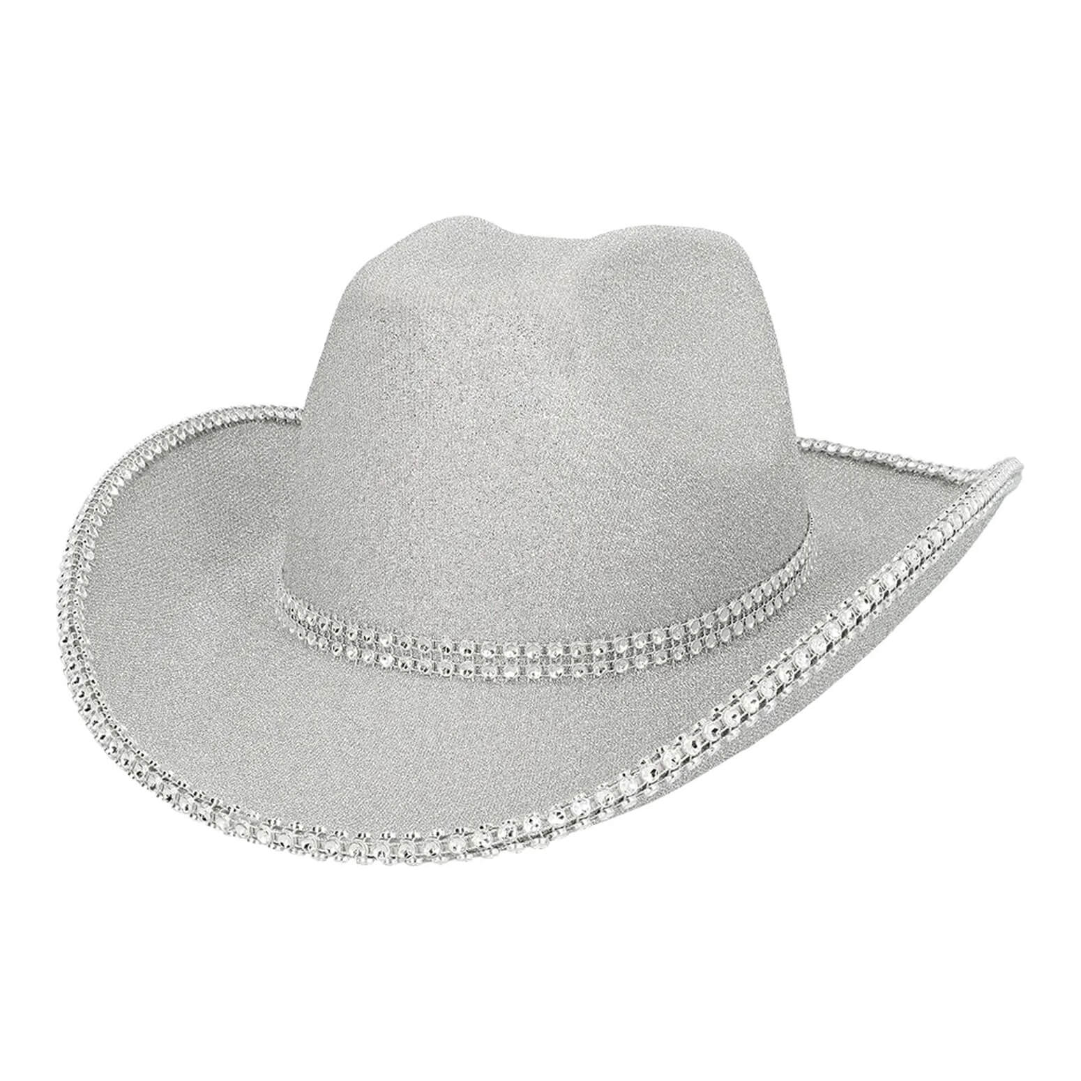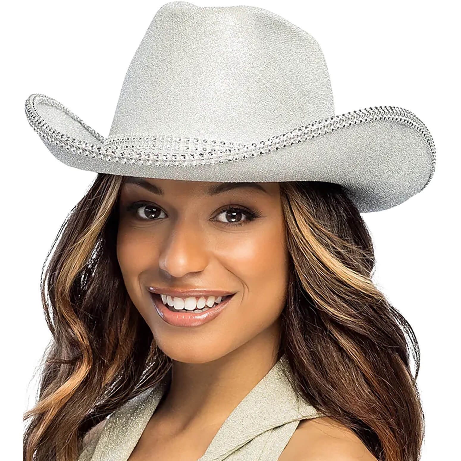 Cowgirl Cowboy / Festival Cowboyhut mit Strass und Glitzer CHARLY silber