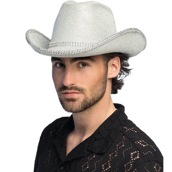 Cowgirl Cowboy/Festival Cowboyhut mit Strass und Glitzer CHARLY silber – (ARTIKEL/REFERNZ: 8712026043993/BO04399 – Kategorie/Suche: – Hersteller: Boland BV)