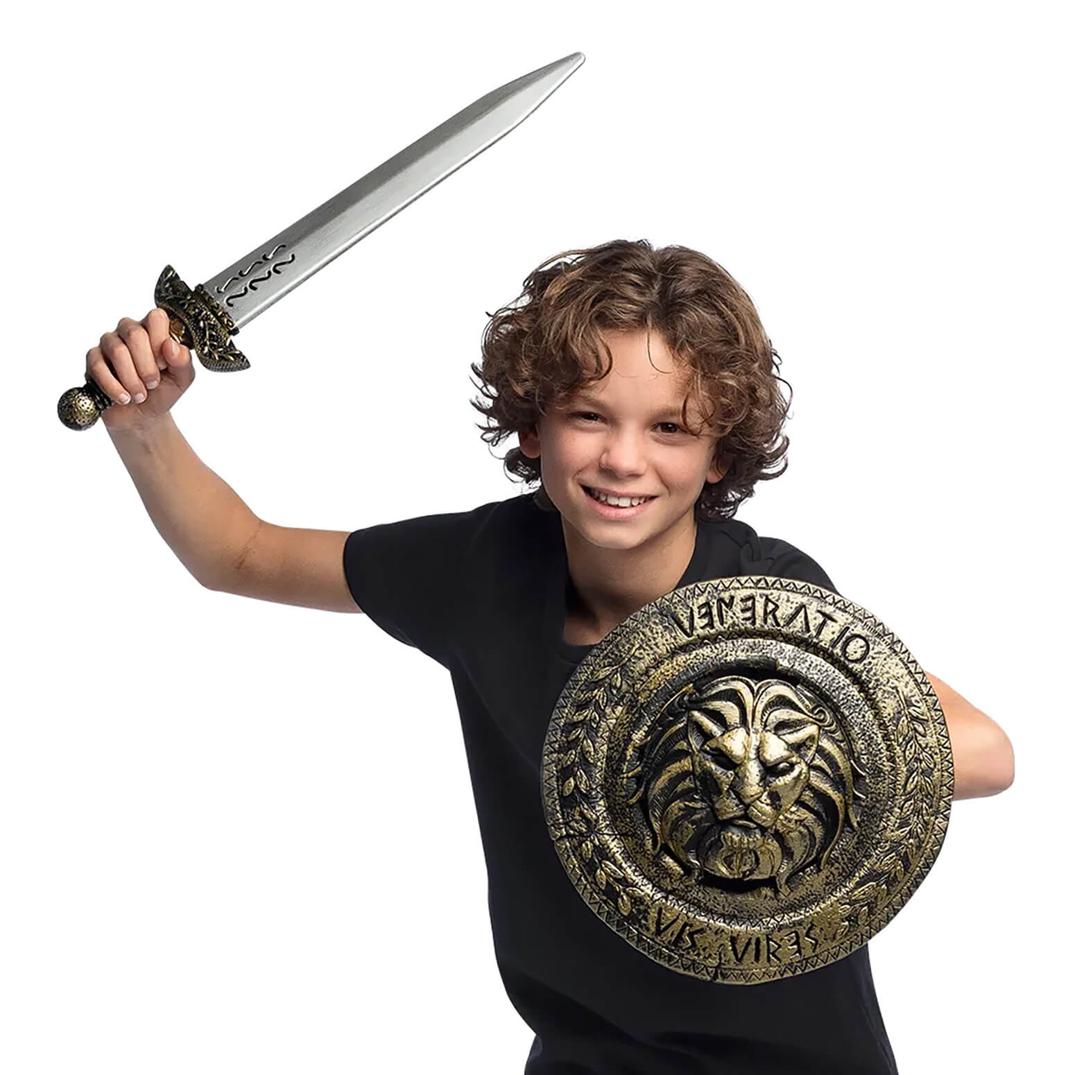Gladiatoren Spartaner Schild+Schwert Set für Kinder 30cm Schild 40cm Schwert RITTER gold-silber