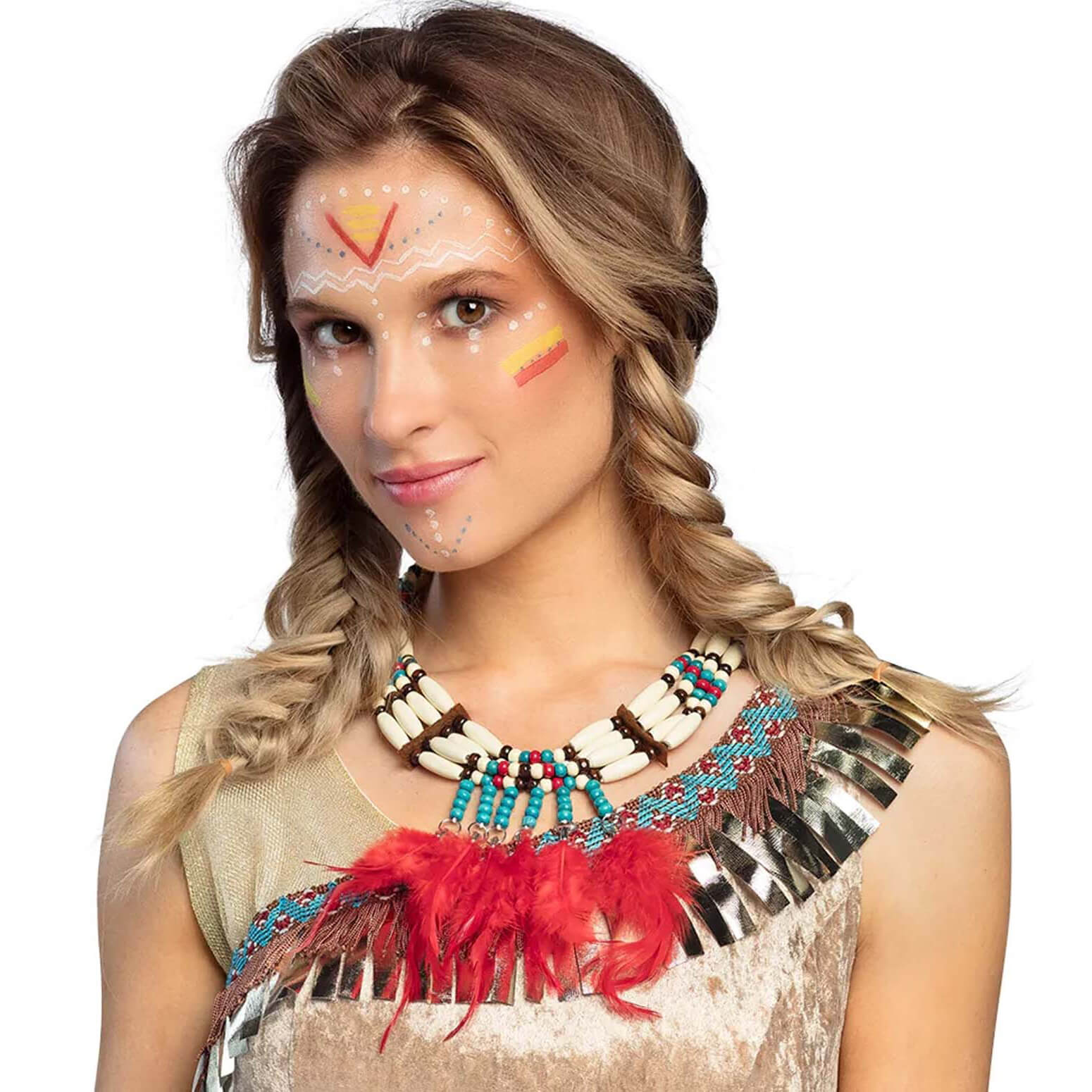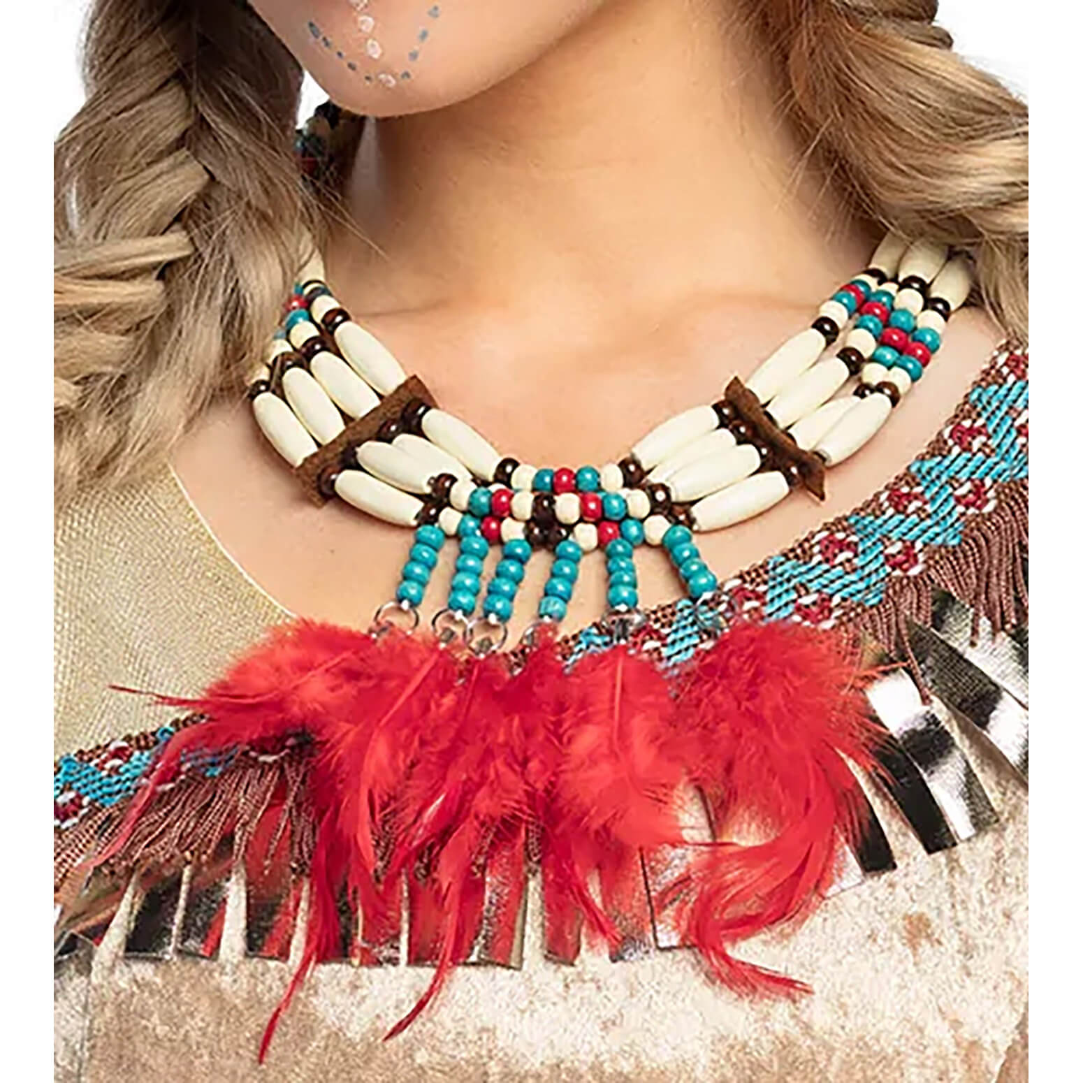 Hippie/Indianer Halskette mit Perlen und Federn Röhrenknochen Optik Perlen LOOTAH beige-rot – (ARTIKEL/REFERNZ: 8712026441294/BO44129 – Kategorie/Suche: – Hersteller: Boland BV)