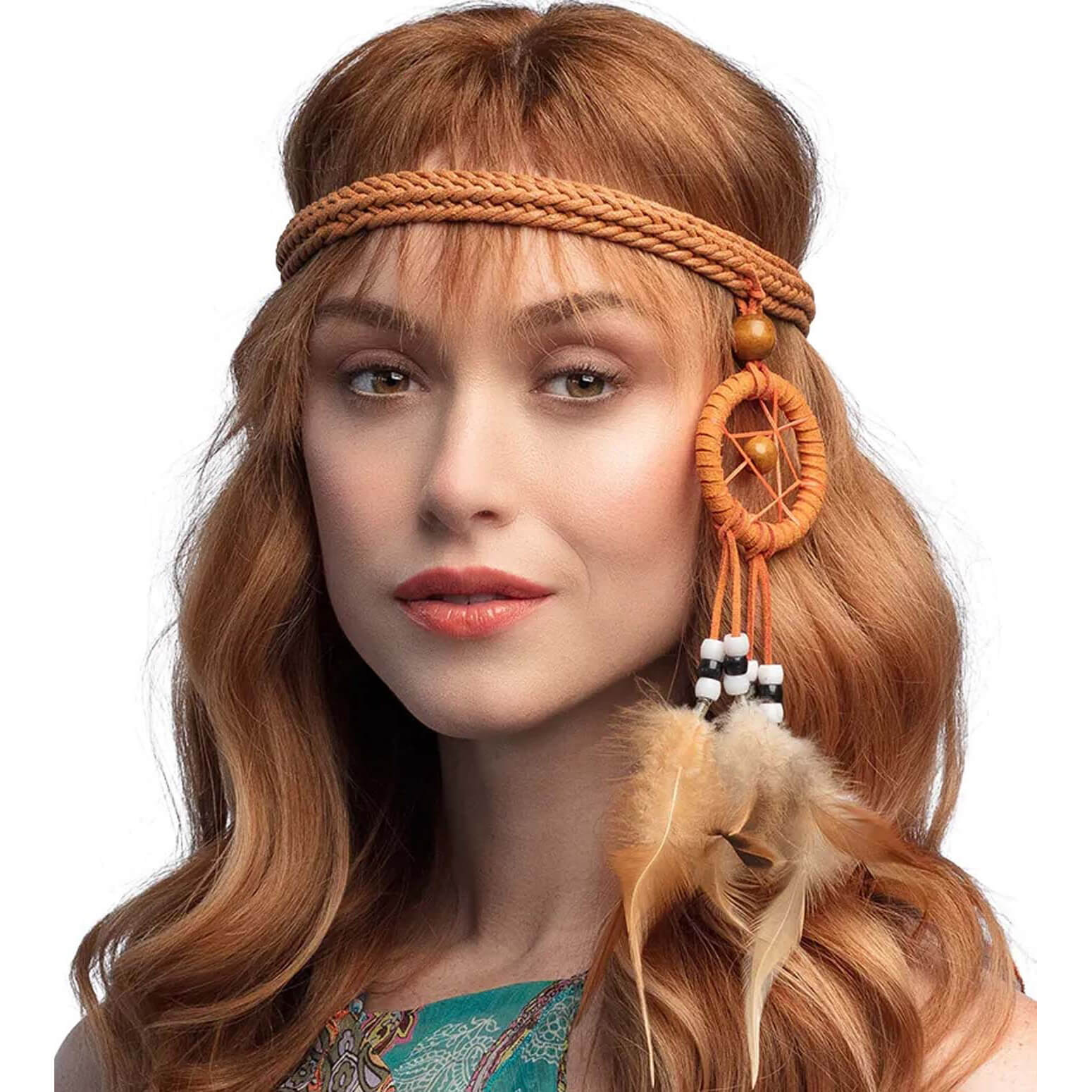 Hippie/Indianer Federstirnband mit Traumfänger DREAMCATCHER hellbraun-schwarz – (ARTIKEL/REFERNZ: 8712026445698/BO44569 – Kategorie/Suche: – Hersteller: Boland BV)