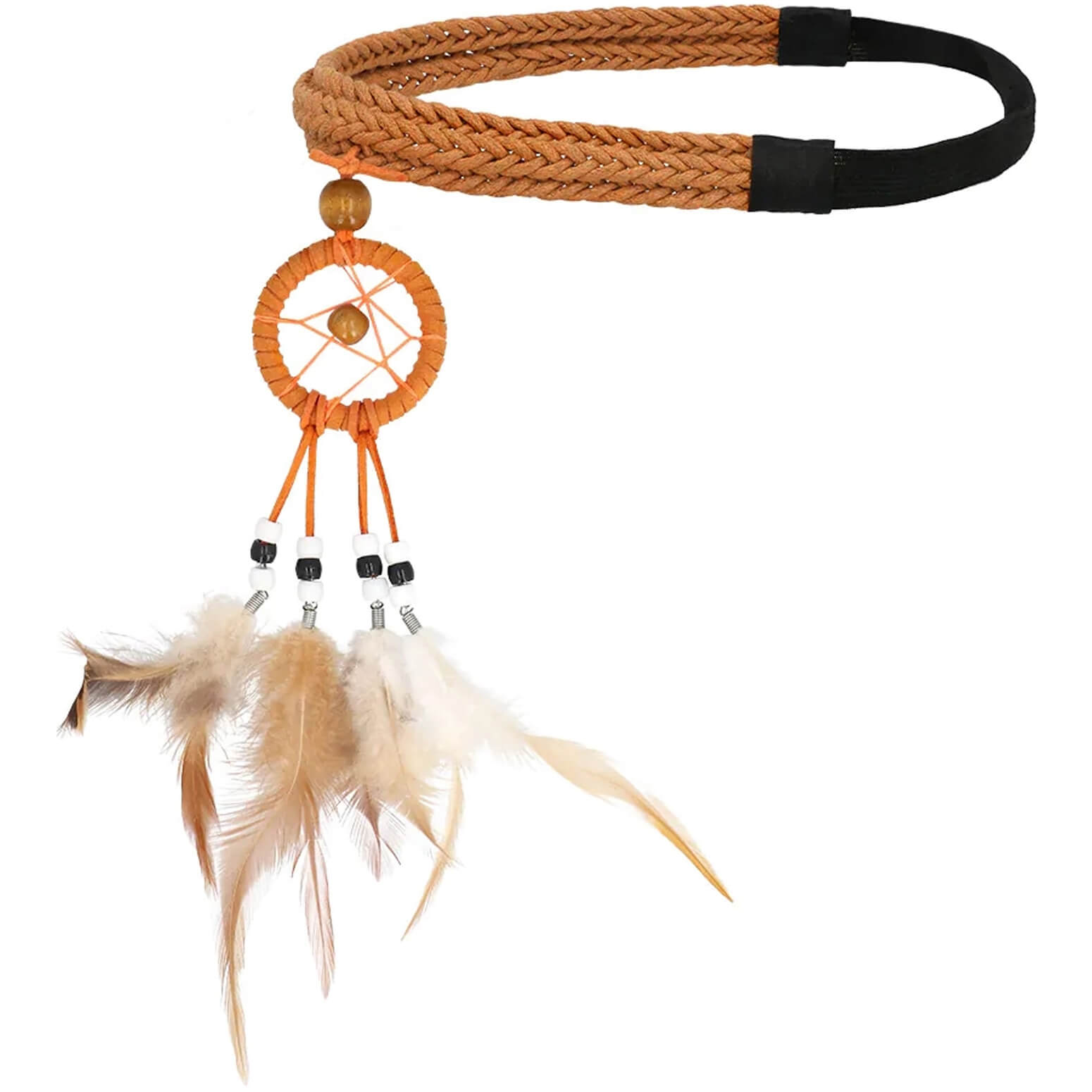 Hippie / Indianer Federstirnband mit Traumfänger DREAMCATCHER hellbraun-schwarz