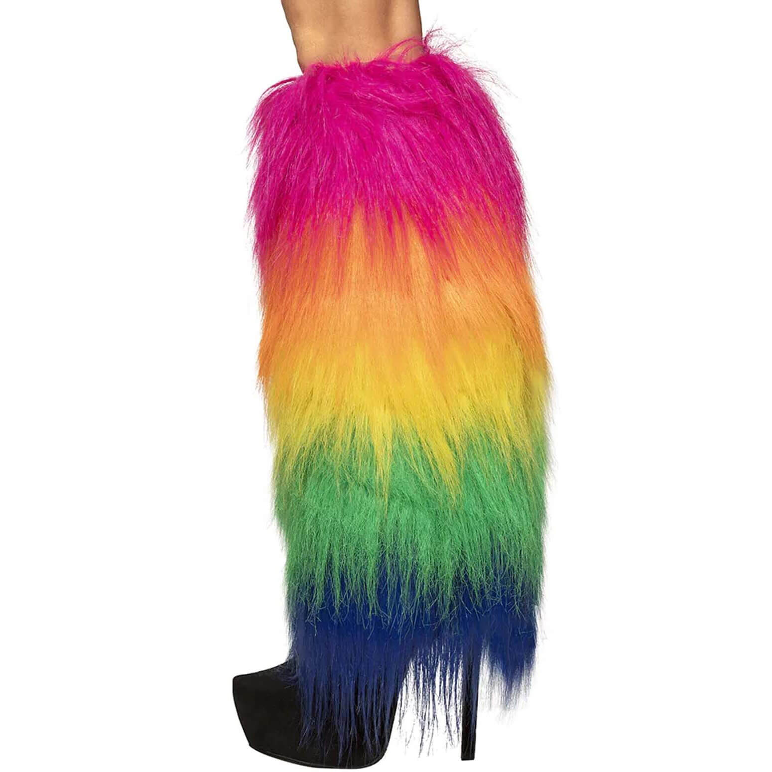 70er / 90er / Festival Hosenschläge Plüsch Beinwärmer auch für Einhornoutfits regenbogen