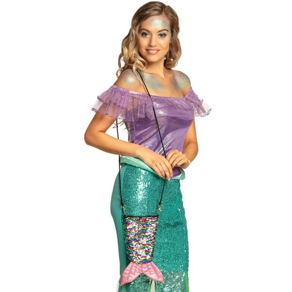 Meerjungfrau Handtasche Umhängetasche mit Pailletten Fischschwanz 19x13cm bunt – (ARTIKEL/REFERNZ: 8712026510242/BO51024 – Kategorie/Suche: Disney Arielle die kleine Meerjungfrau Marvel DC Aquaman – Hersteller: Boland BV)