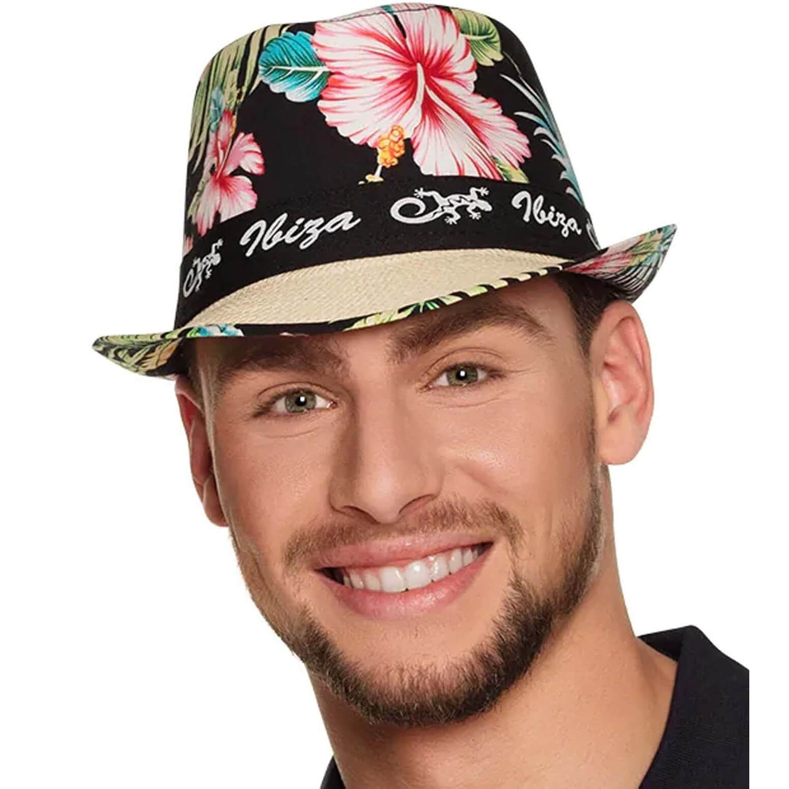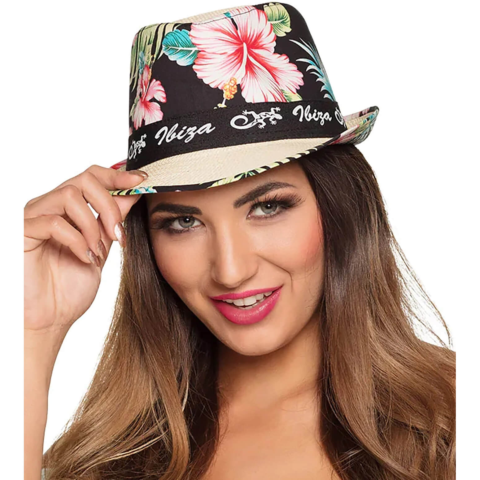 Blumen Strohhut Trilbyhut schmale Krempe mit Band IBIZA bunt – (ARTIKEL/REFERNZ: 8712026522269/BO52226 – Kategorie/Suche: Fedora – Hersteller: Boland BV)