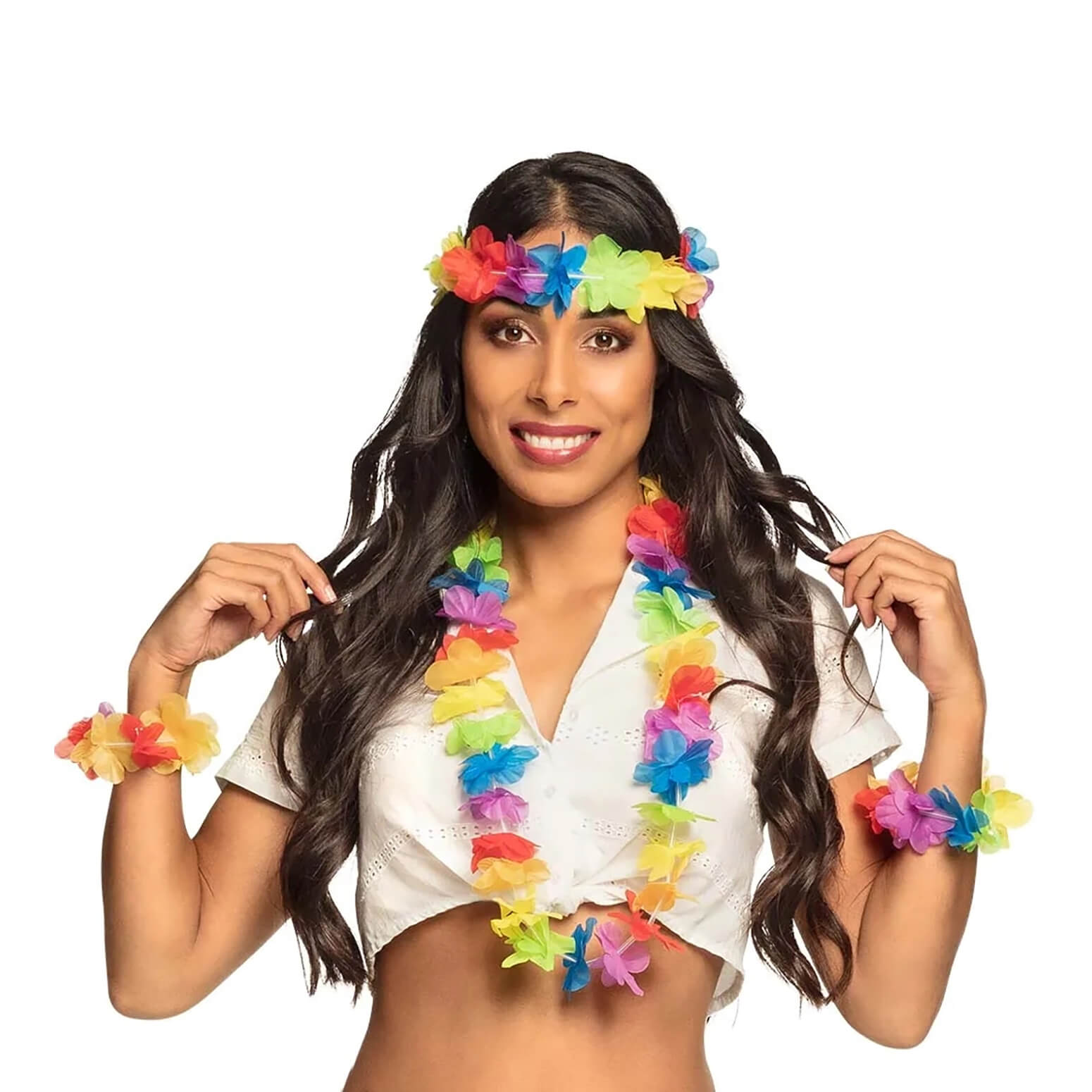 Hawaii/Blumen Halskette+Armbänder+Stirnband Set Hawaiikette Lei RAINBOW bunt – (ARTIKEL/REFERNZ: 8712026524164/BO52416 – Kategorie/Suche: – Hersteller: Boland BV)