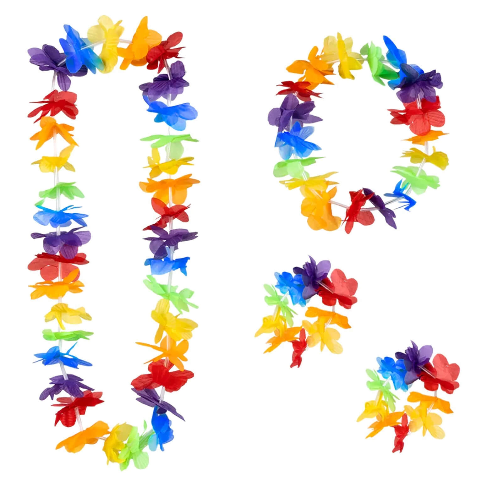 Hawaii / Blumen Halskette+Armbänder+Stirnband Set Hawaiikette Lei RAINBOW bunt