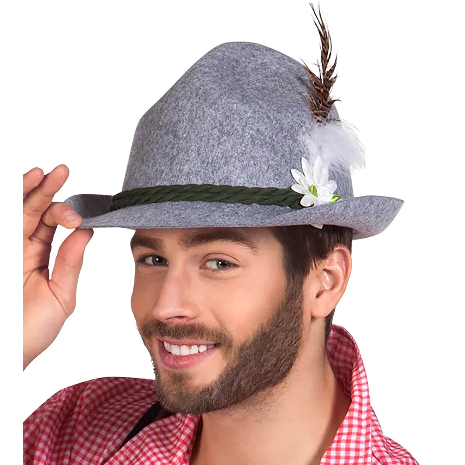 Trachten/Jäger Hut mit Feder Edelweiß und 2 Zierkordeln Filz EWALD grau-grün – (ARTIKEL/REFERNZ: 8712026542359/BO54235 – Kategorie/Suche: Oktoberfest – Hersteller: Boland BV)