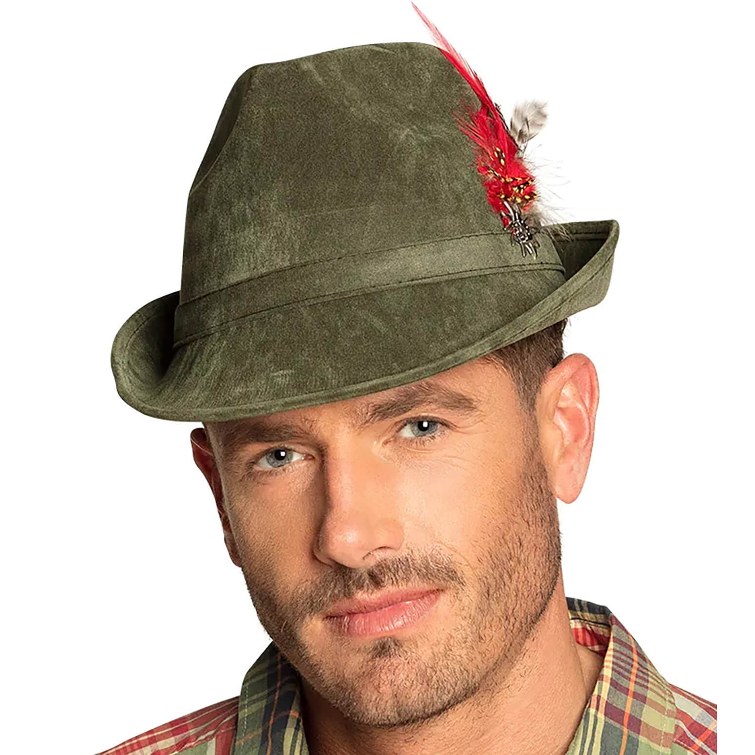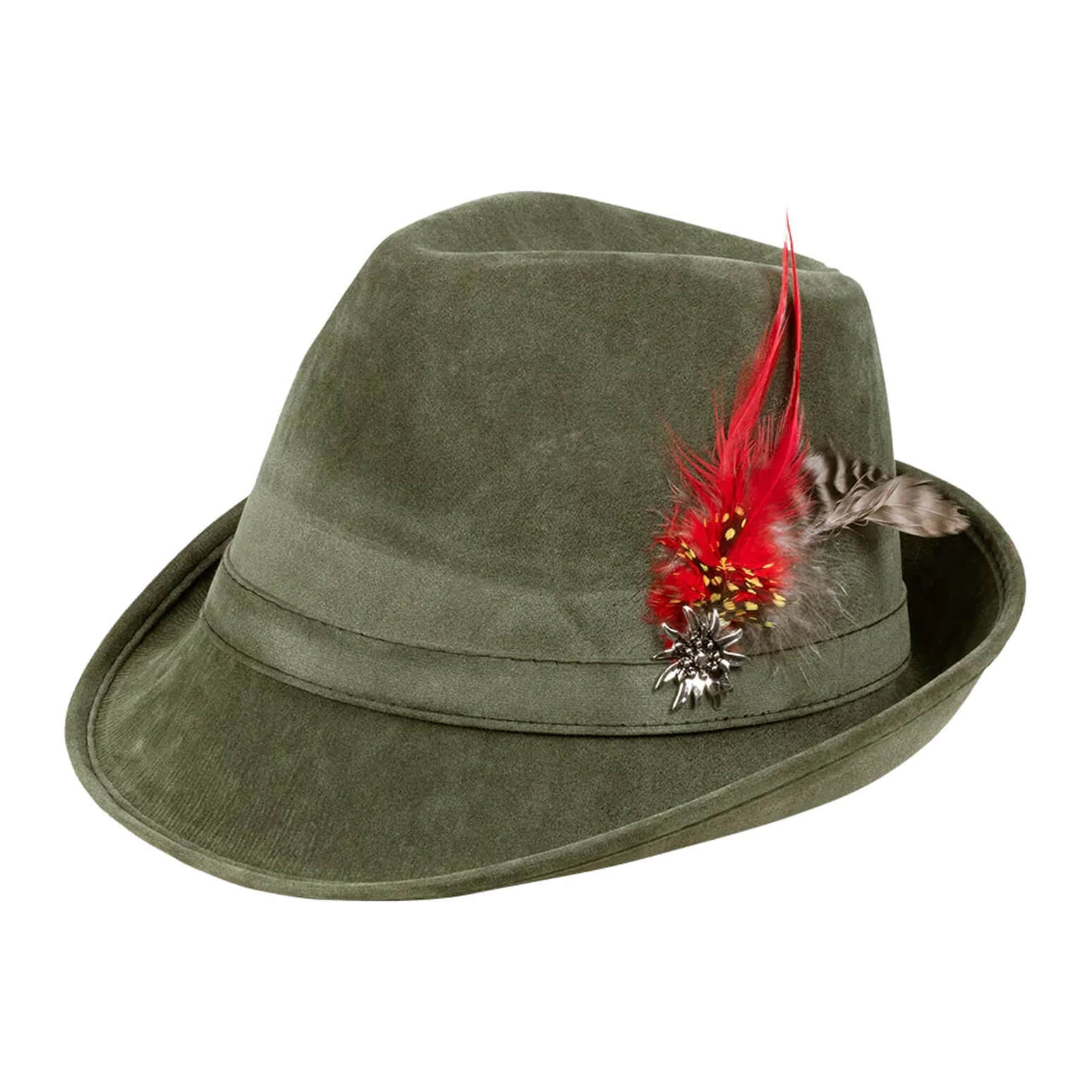 Trachten/Jäger Hut Velours mit Band und Feder JAGDMEISTER dunkelgrün-rot – (ARTIKEL/REFERNZ: 8712026542854/BO54285 – Kategorie/Suche: Oktoberfest – Hersteller: Boland BV)