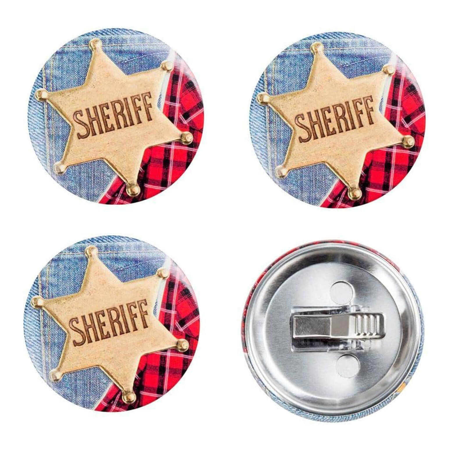 Cowboy Western Sheriff Broschen Button Set SHERIFF STERN bunt