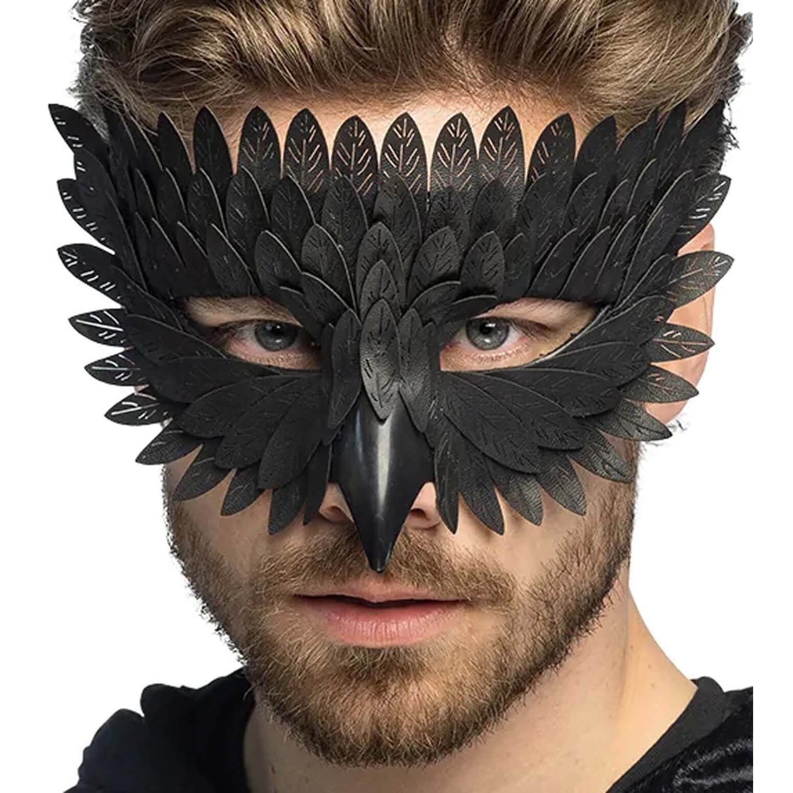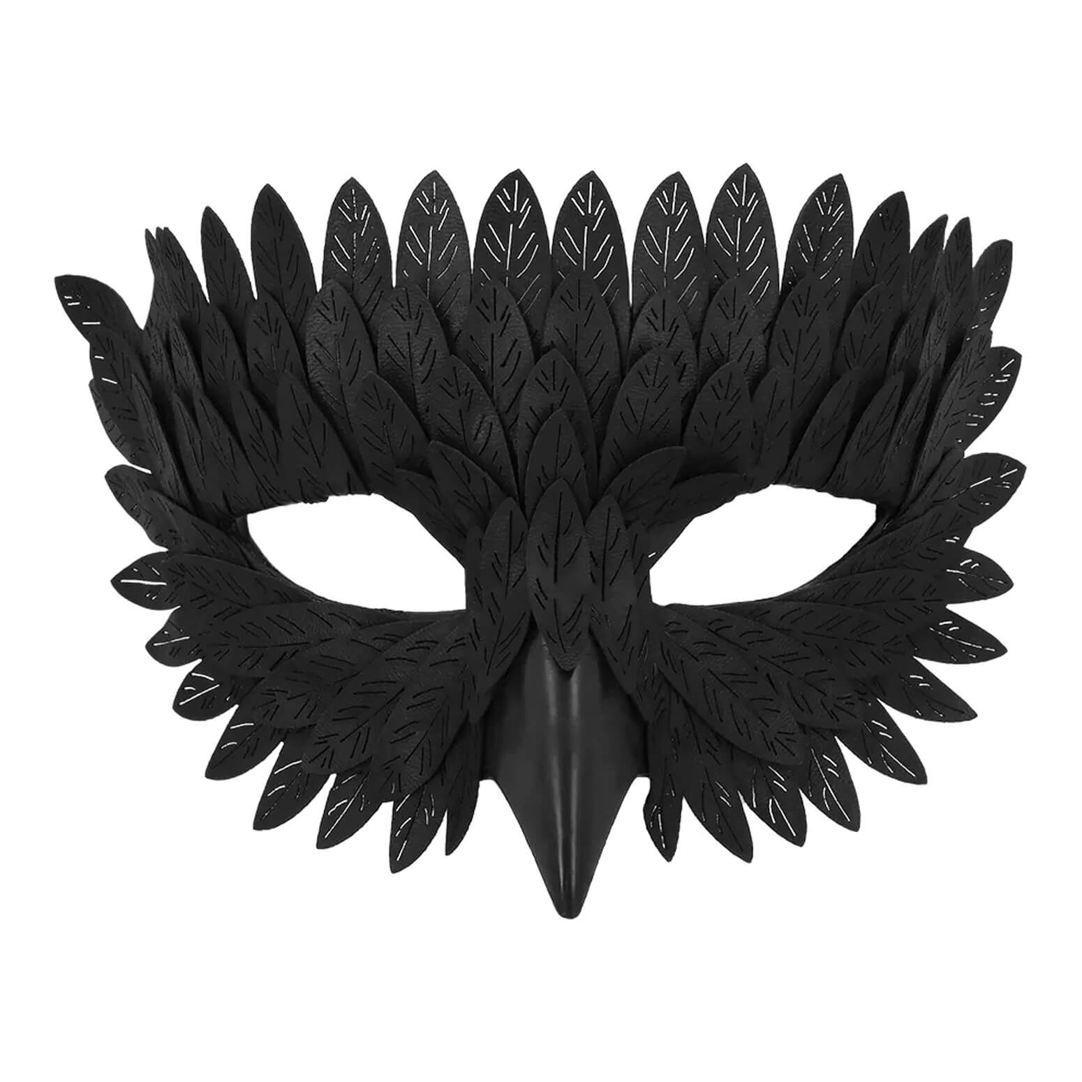 Vogel Krähe Dominomaske mit Schnabel mit angedeuteten Federn aus Kunststoff schwarz