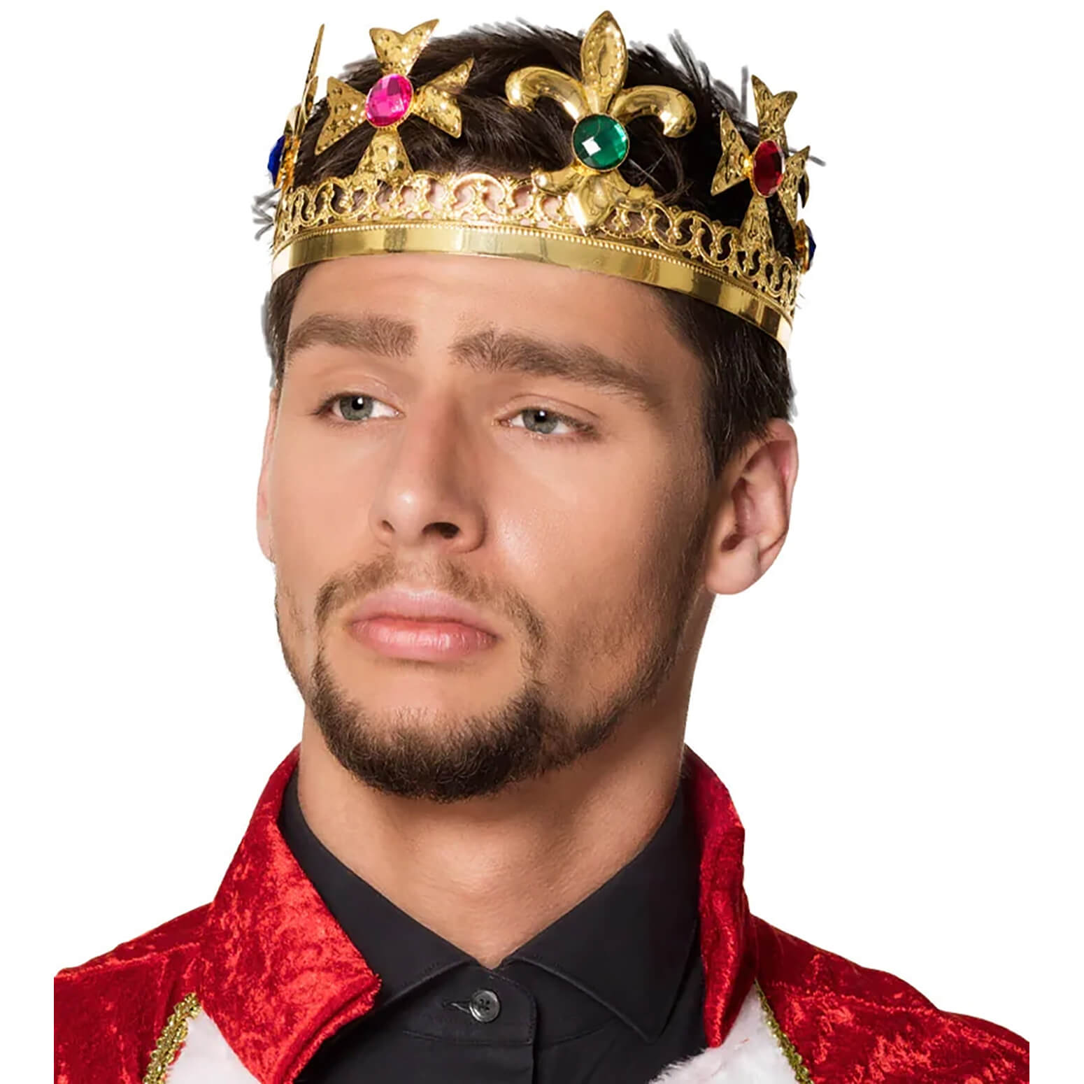 Königinnen Königs Krone aus Metall mit Steinen Kreuzen und Lilien Deluxe gold-bunt