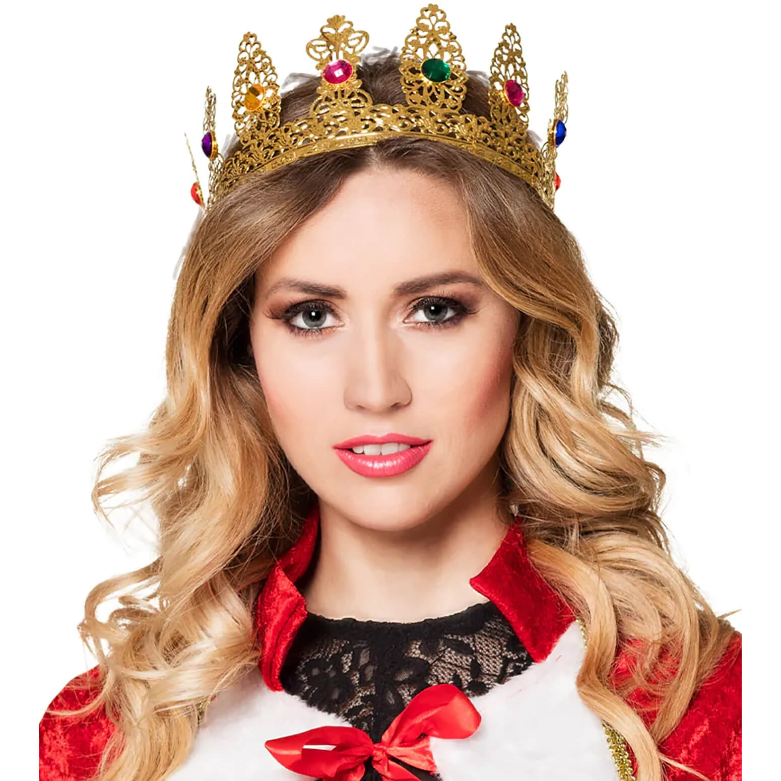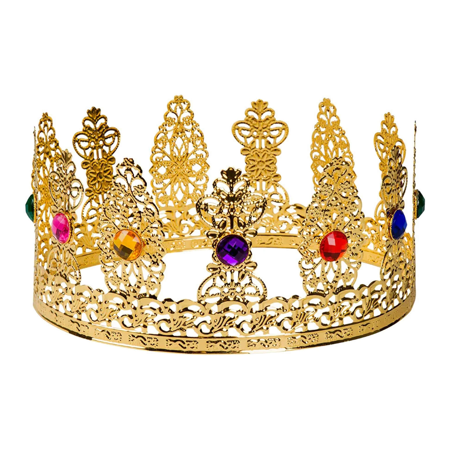 Königinnen Königs Krone aus Metall mit Steinen elegant durchbrochen gold-bunt