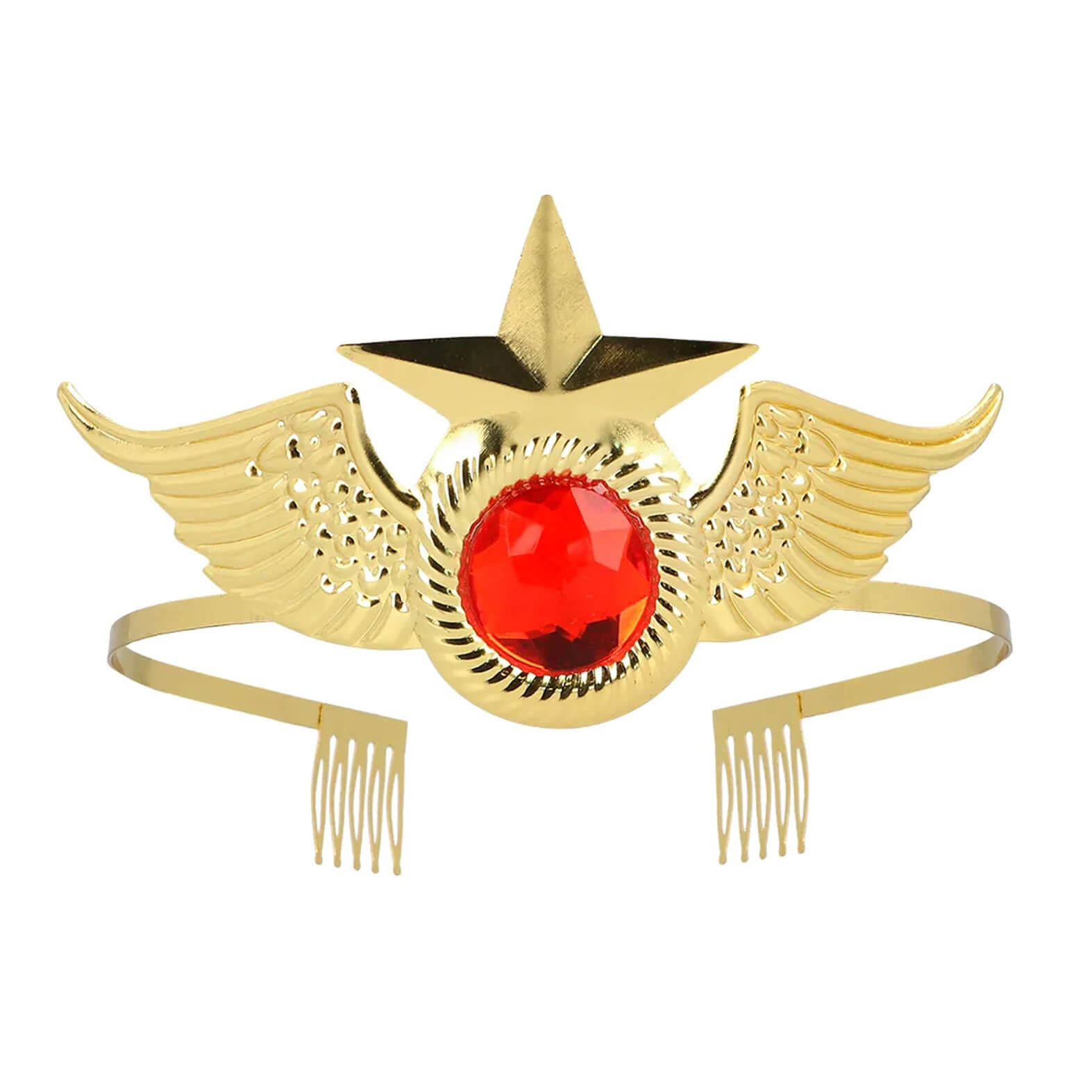 Superheldin Power Woman Krone Diadem Stirnschmuck mit Flügeln Stern und Stein gold-rot – (ARTIKEL/REFERNZ: 8712026645692/BO64569 – Kategorie/Suche: Wonder Woman Marvel DC Disney Comics – Hersteller: Boland BV)