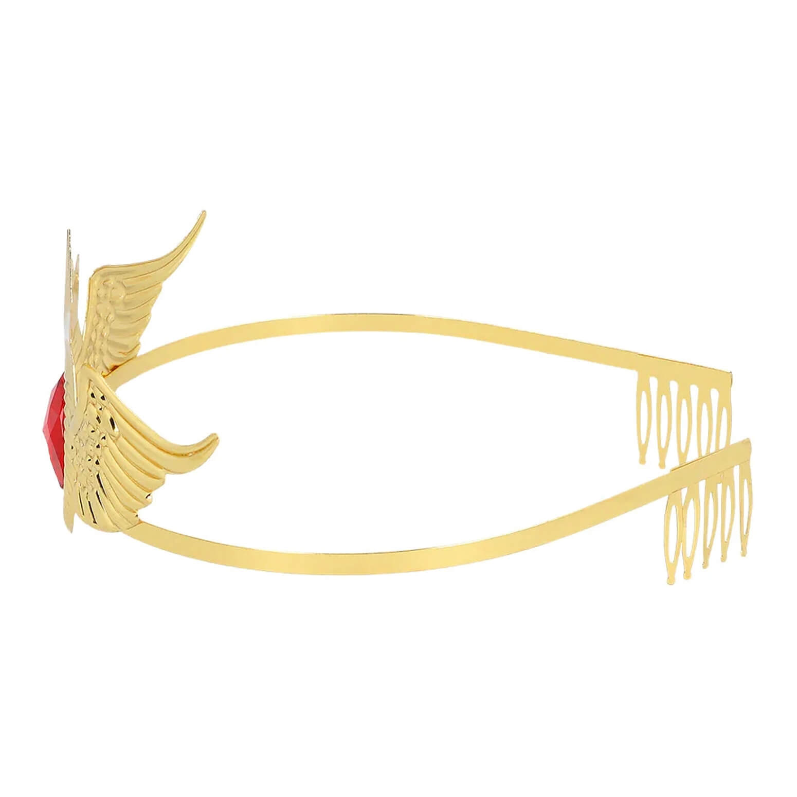 Superheldin Power Woman Krone Diadem Stirnschmuck mit Flügeln Stern und Stein gold-rot