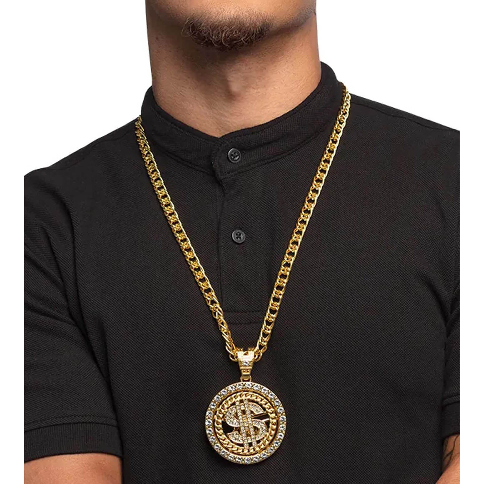Geld Dollarzeichen Halskette mit Anhänger Strassoptik edel druchbrochen DOLLAR DELUXE gold-silber – (ARTIKEL/REFERNZ: 8712026645722/BO64572 – Kategorie/Suche: – Hersteller: Boland BV)