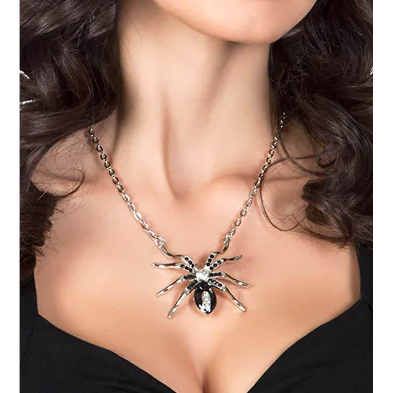 Spinne Halskette mit Anhänger Strassoptik mit Steinen BLACK WIDOW sileber-schwarz