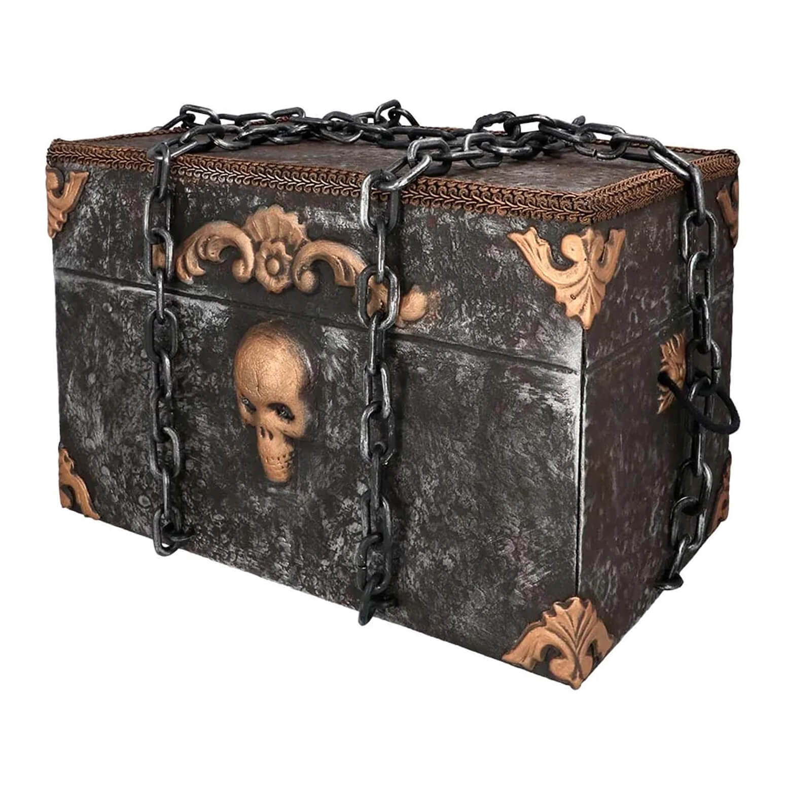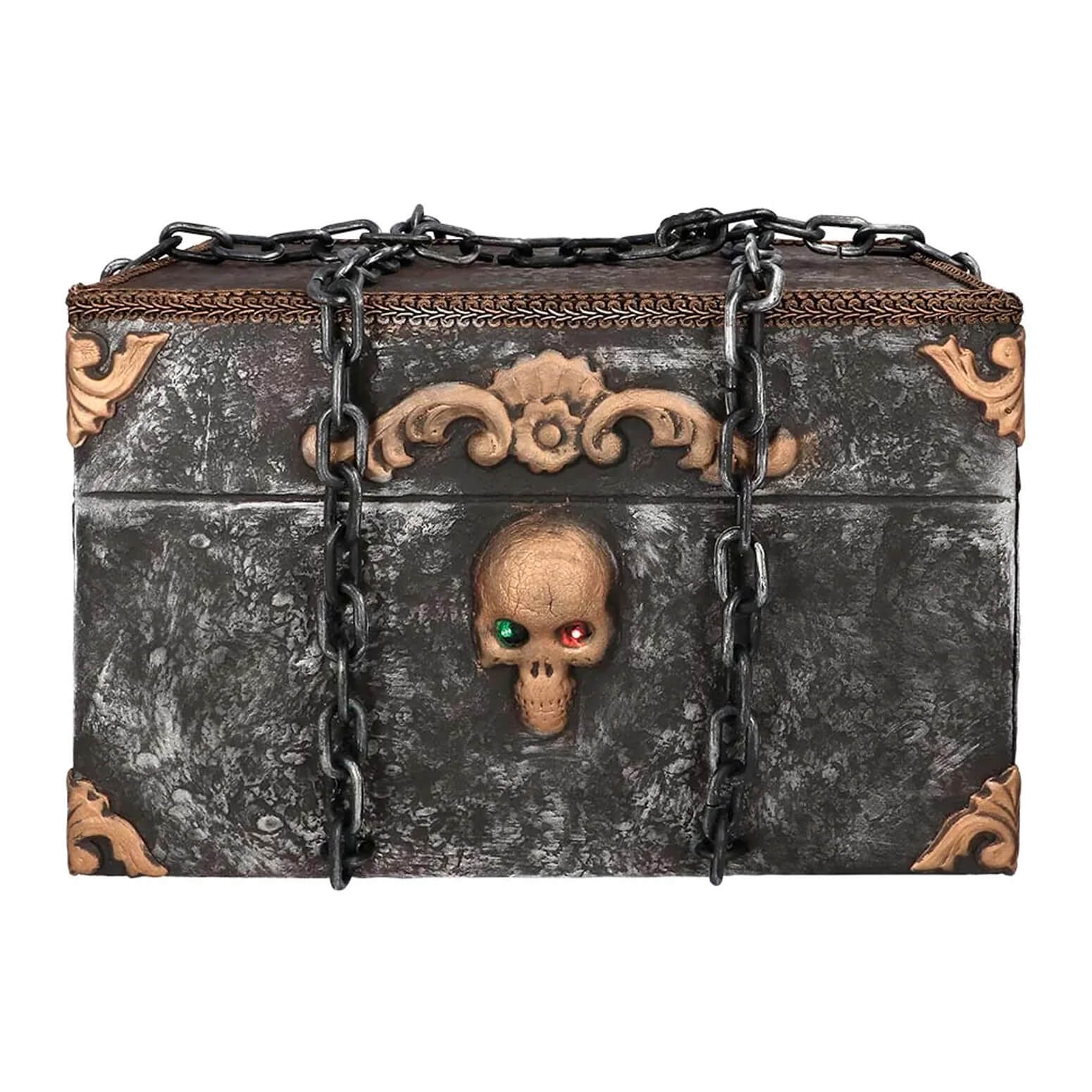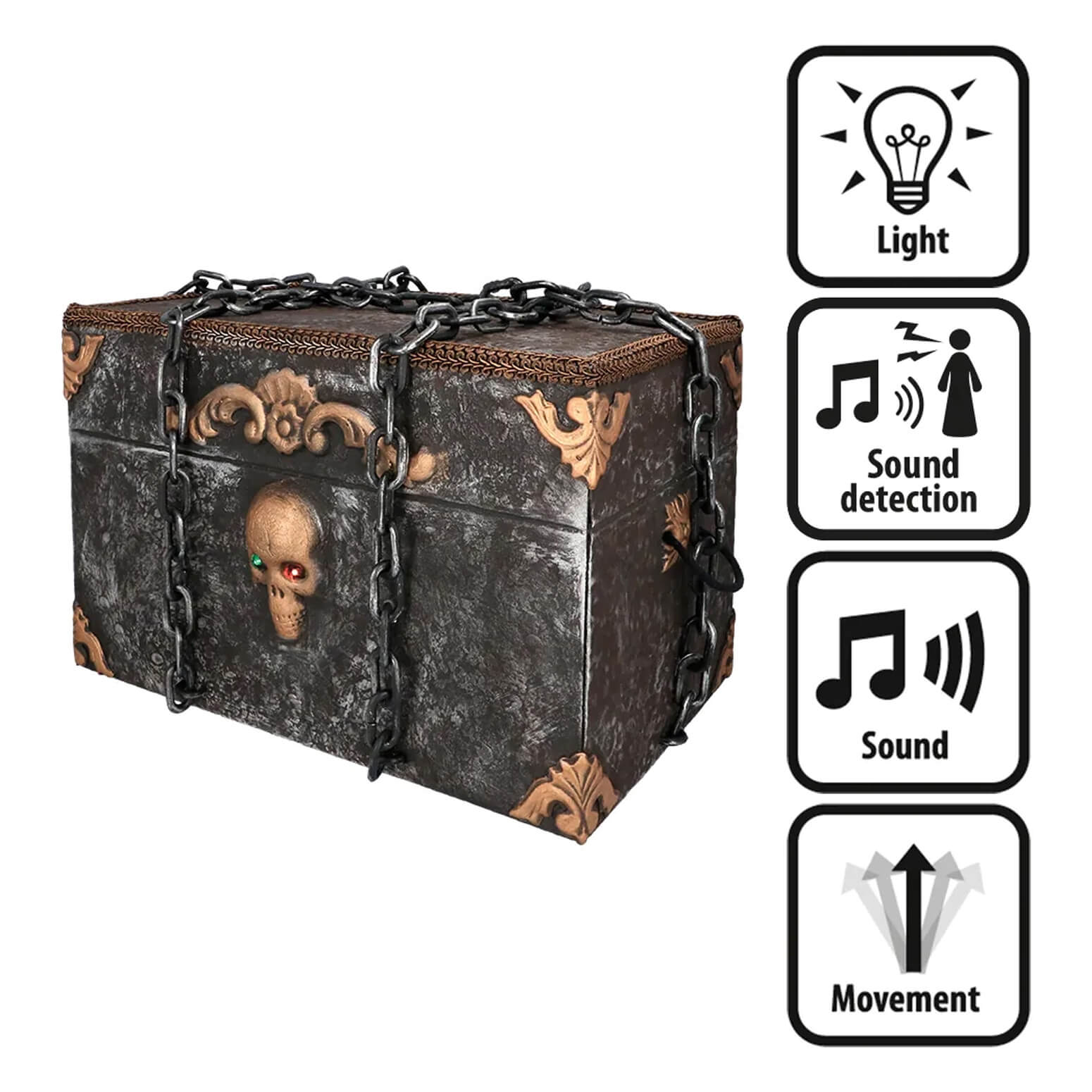 Piraten Schatztruhe Deko Standfigur animiert+LED+Sound und Ketten bewegt sich schreit und leuchtet 50x31x31cm grau