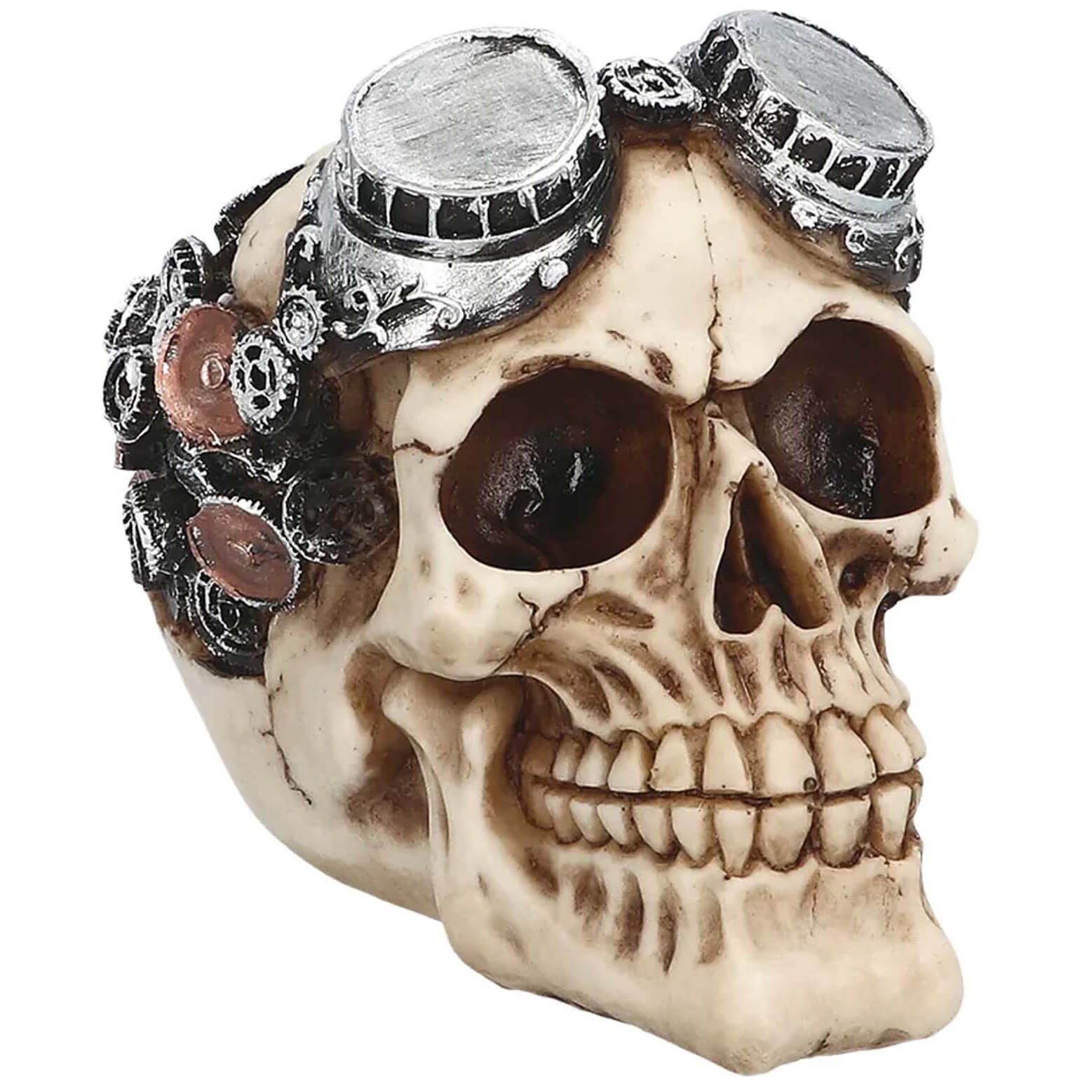 Schädel bleich Deko Standfigur 9x14x11cm mit Brille und Zahnrädern STEAMPUNK beige-silber – (ARTIKEL/REFERNZ: 8712026730855/BO73085 – Kategorie/Suche: Dia de los Muertos Catrina Tag der Toten – Hersteller: Boland BV)
