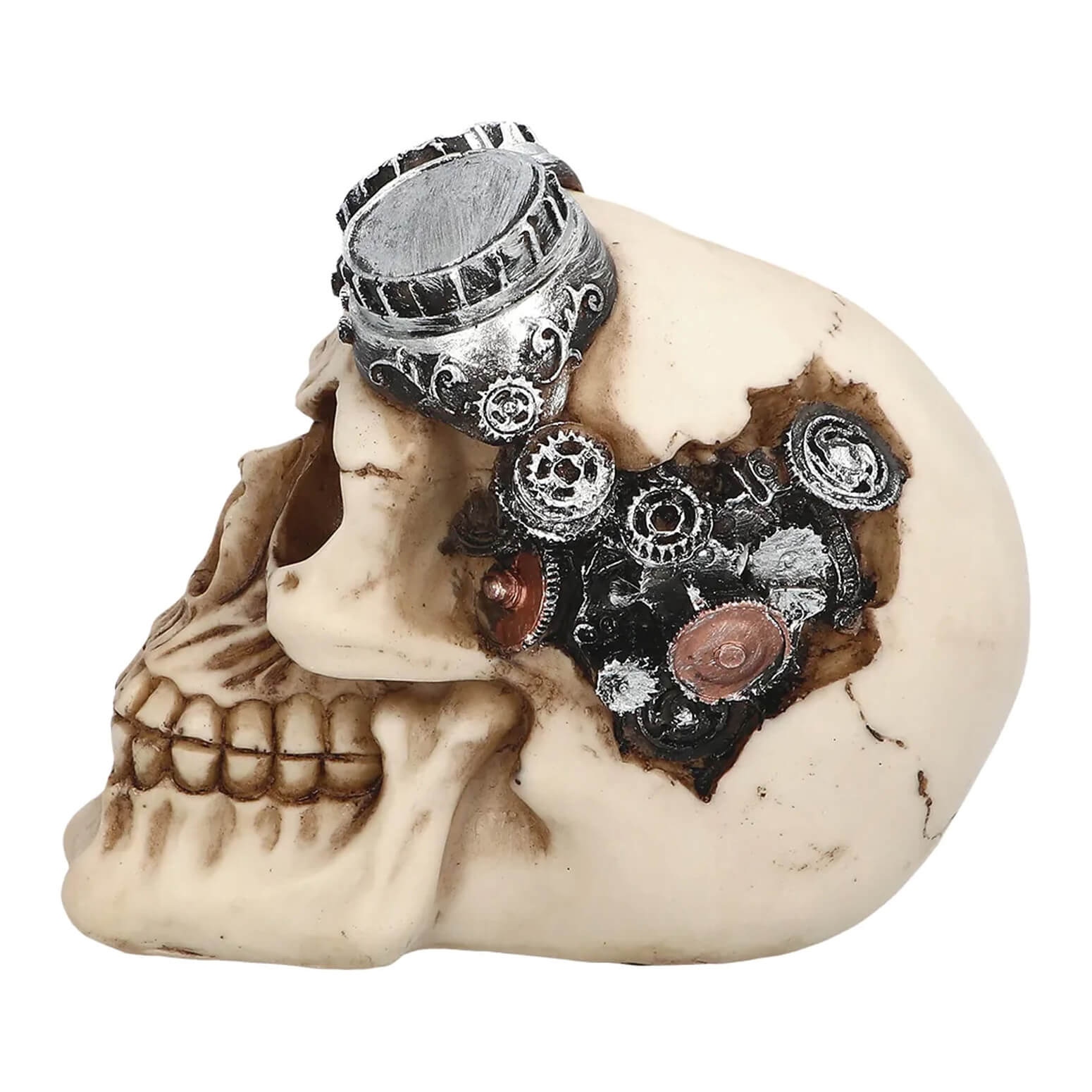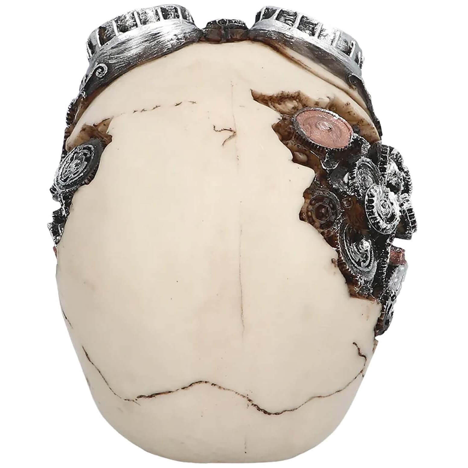 Schädel bleich Deko Standfigur 9x14x11cm mit Brille und Zahnrädern STEAMPUNK beige-silber