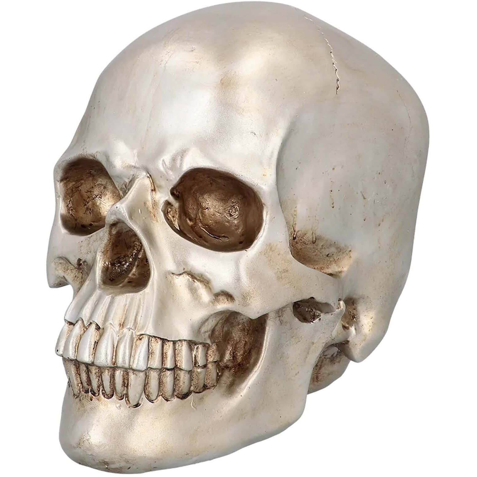 Schädel bleich Deko Standfigur 26x18x23cm mit Perlglanz Schimmer SHINE creme