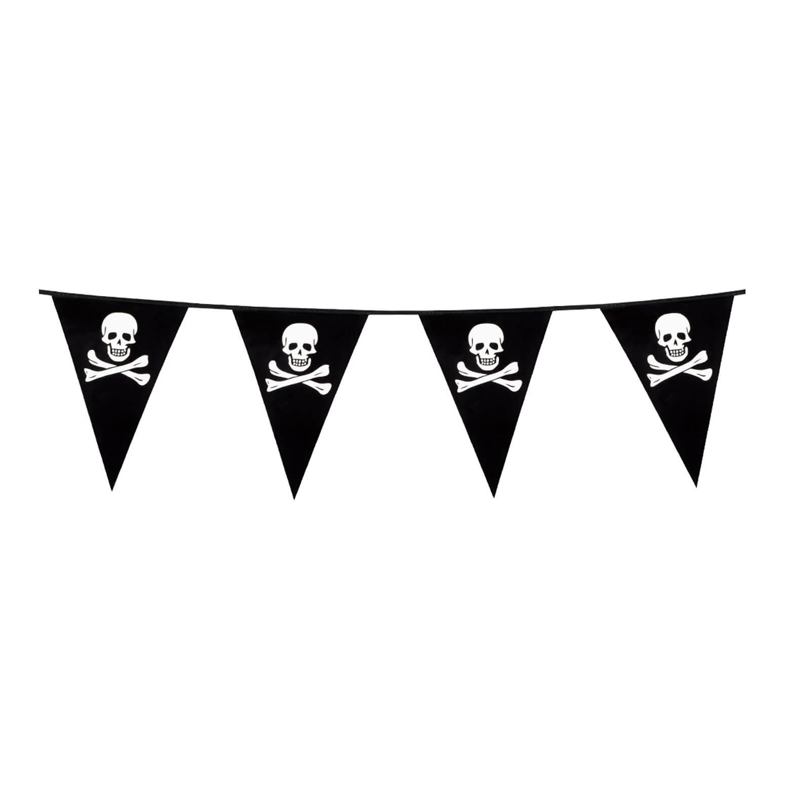 Schädel gekreuzte Knochen Dekogirlande Wimpelkette aus Kunststoff 6m schwarz
