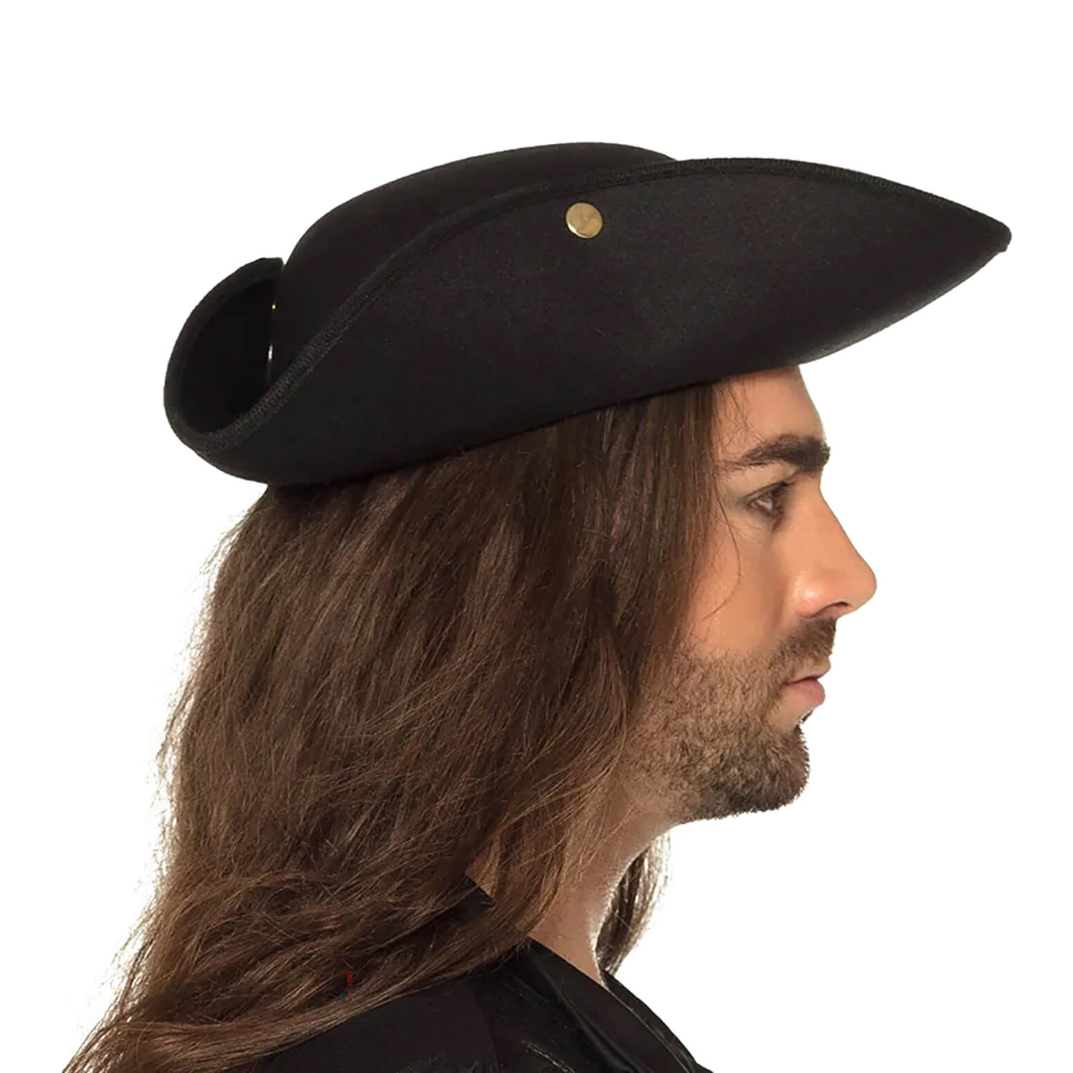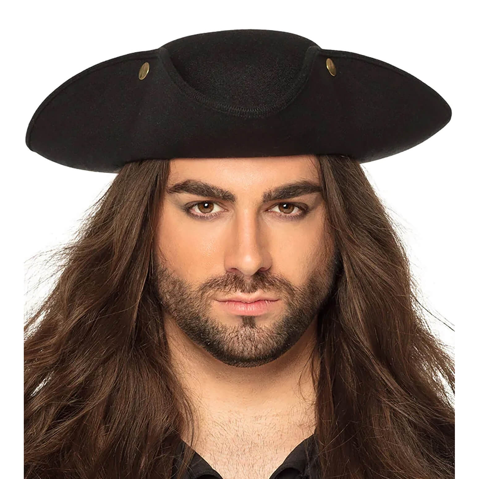 Edelleute / Piraten Dreispitzhut Filz mit Druckknöpfen ADMIRAL WILLIAM schwarz