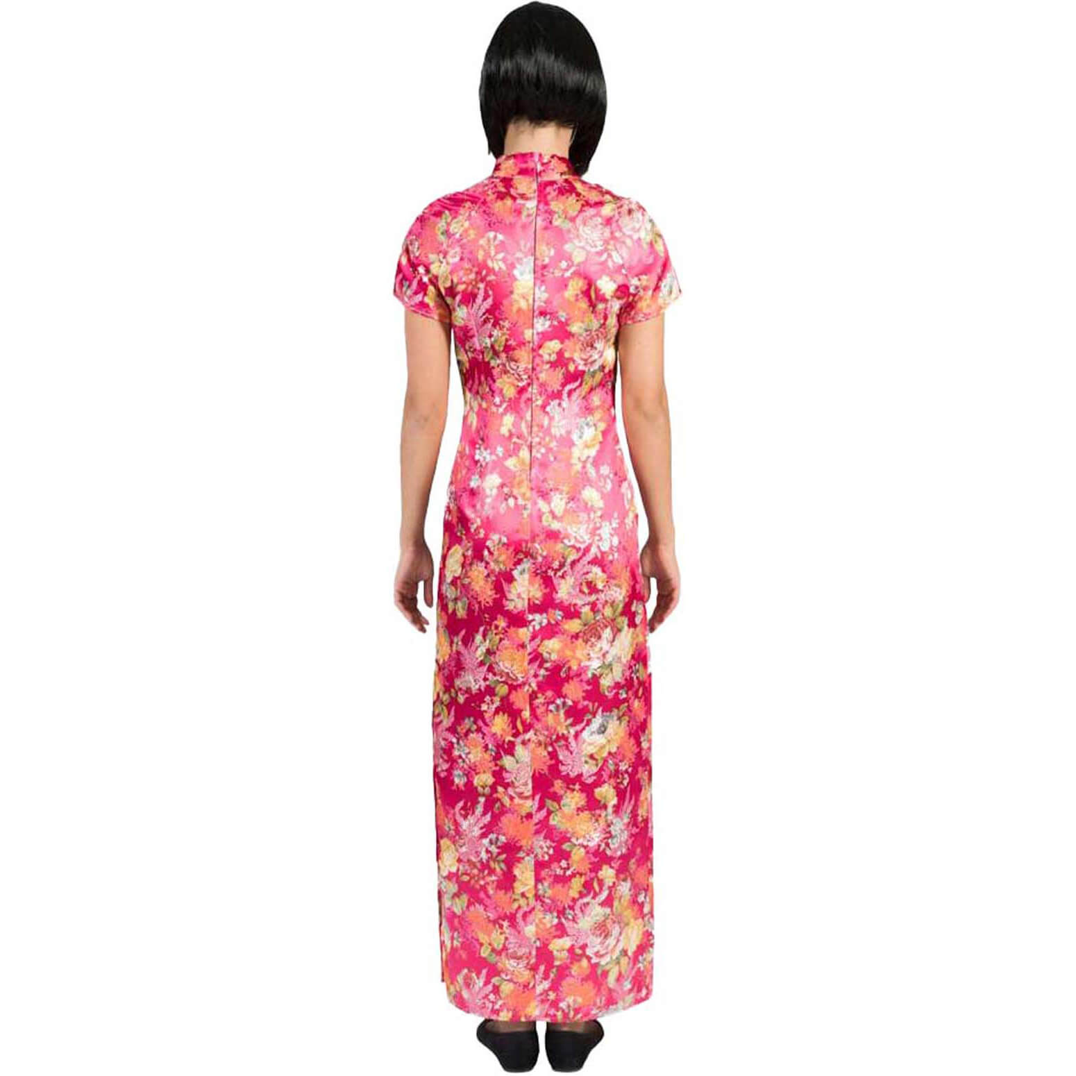 Chinesin Japanerin Kostüm Kleid lang traditionell geschnitten mit Blumen Geisha pink-bunt