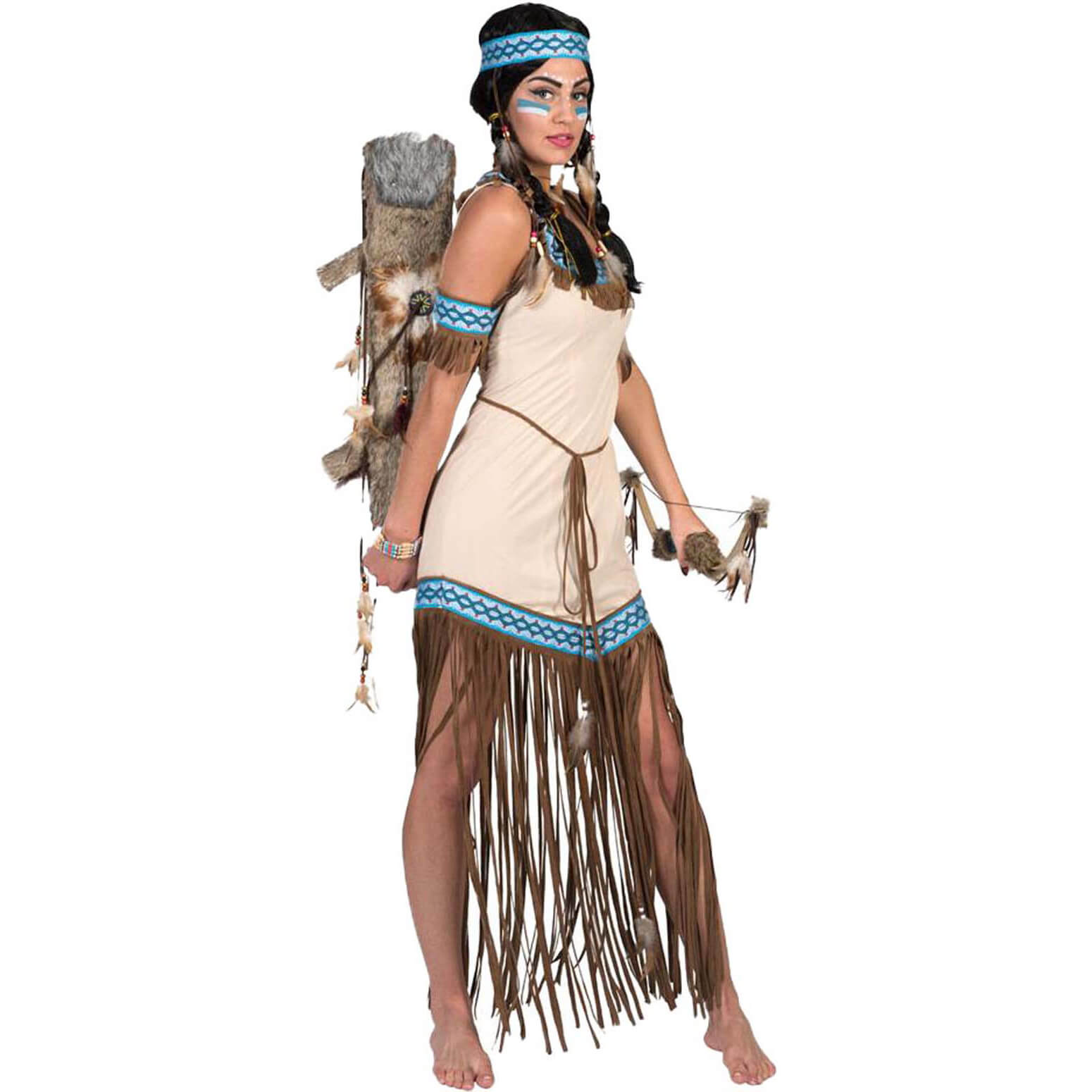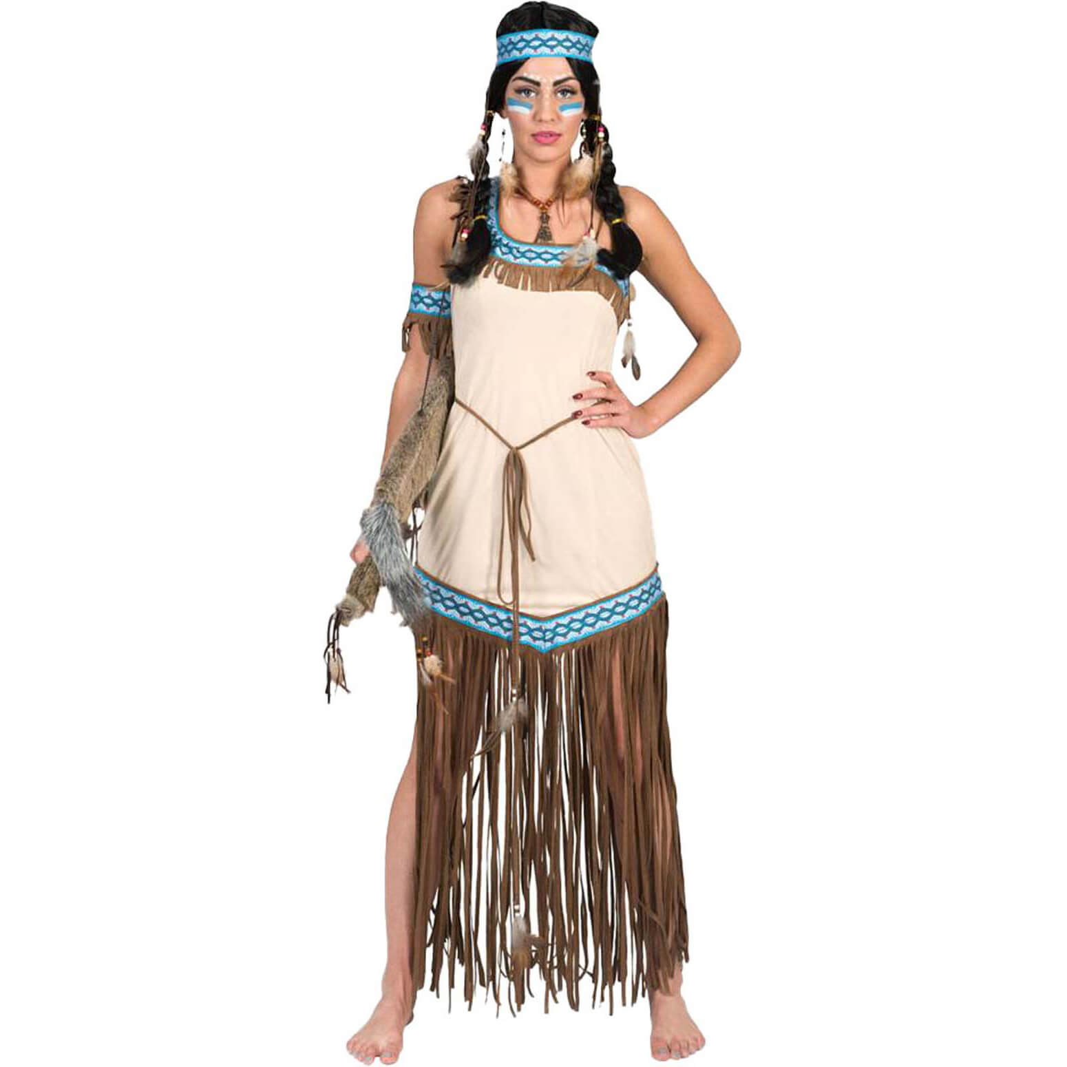 Indianerin Kostüm Kleid kurz THUNDERING TEEPEE SQUAW creme-türkis – (ARTIKEL/REFERNZ: 8712364352092/FF50213436-38-8712364352108/FF50213440-42-8712364352115/FF50213444-46 – Kategorie/Suche: – Hersteller: ESPA NV)