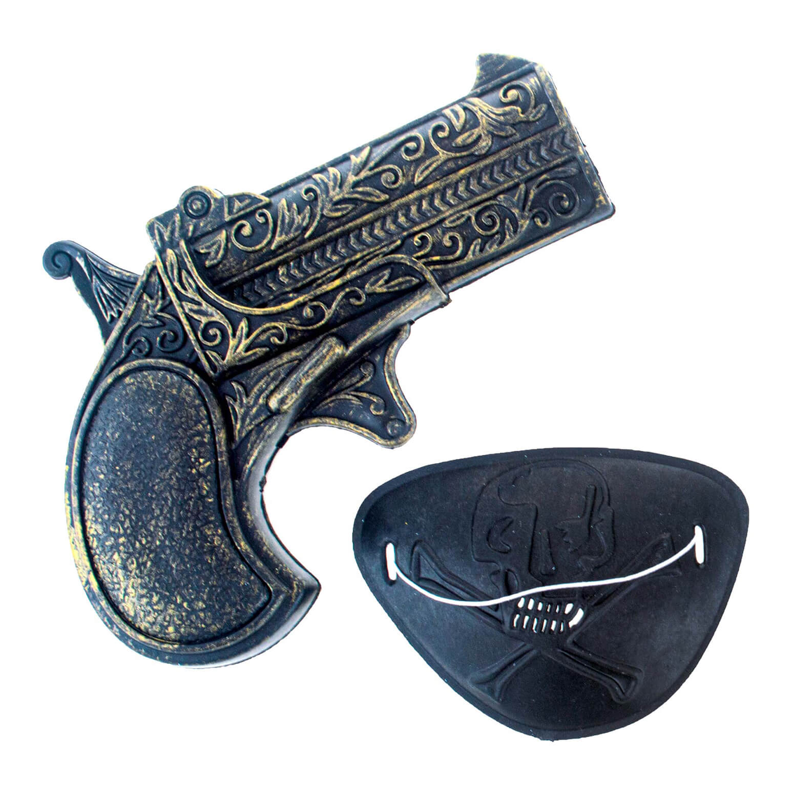 Piraten Pistole+Augenklappe Dekopistole Derringer gold-schwarz