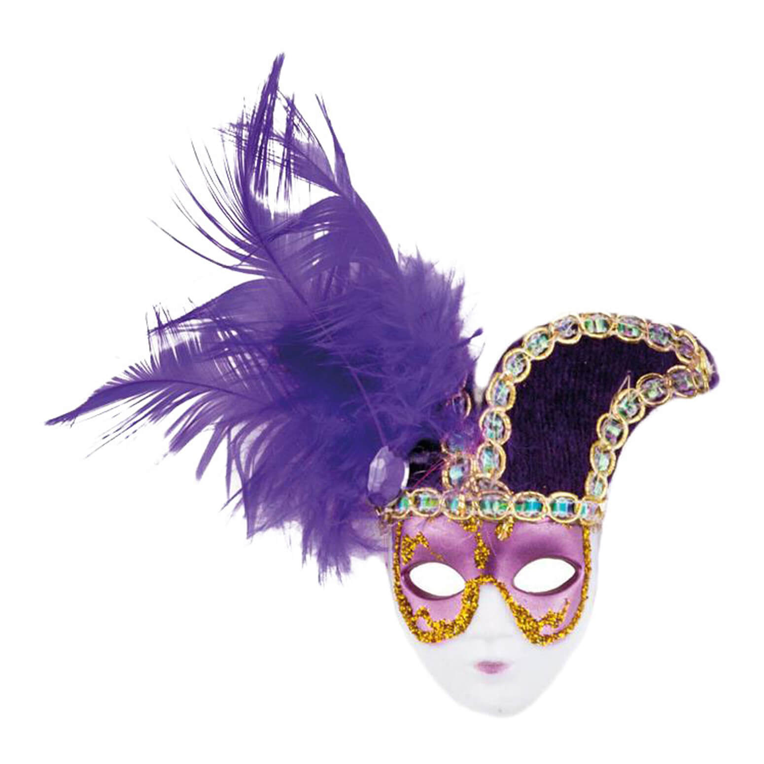 Clown Harlekin Brosche venezianische Maske mit Hörnerhut und Federn bunt – (ARTIKEL/REFERNZ: 8712364617788/FF61778 – Kategorie/Suche: – Hersteller: ESPA NV)