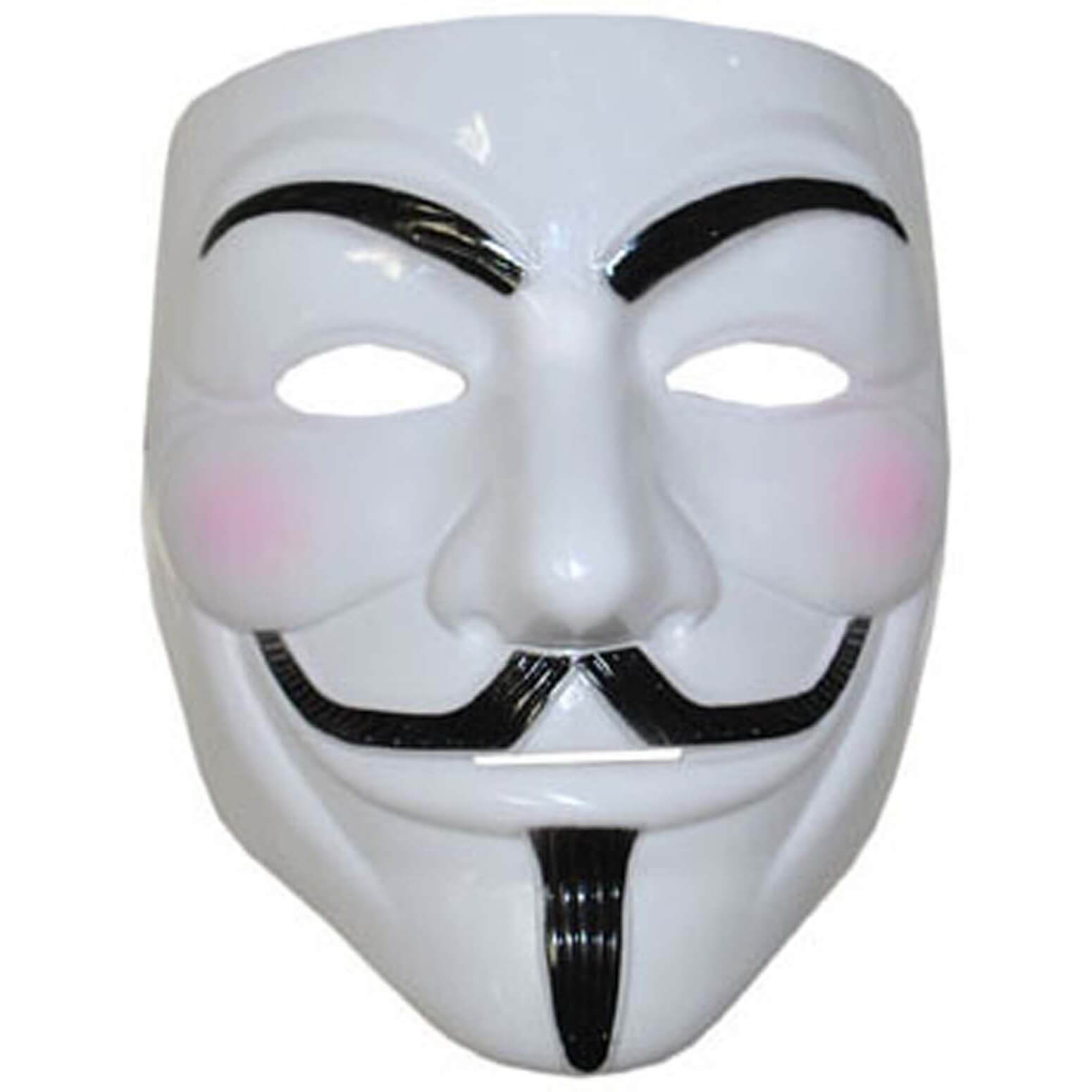 Anonymous Gesichtsmaske aus Kunststoff mit Schnurrbart und Kinnbart weiß-schwarz