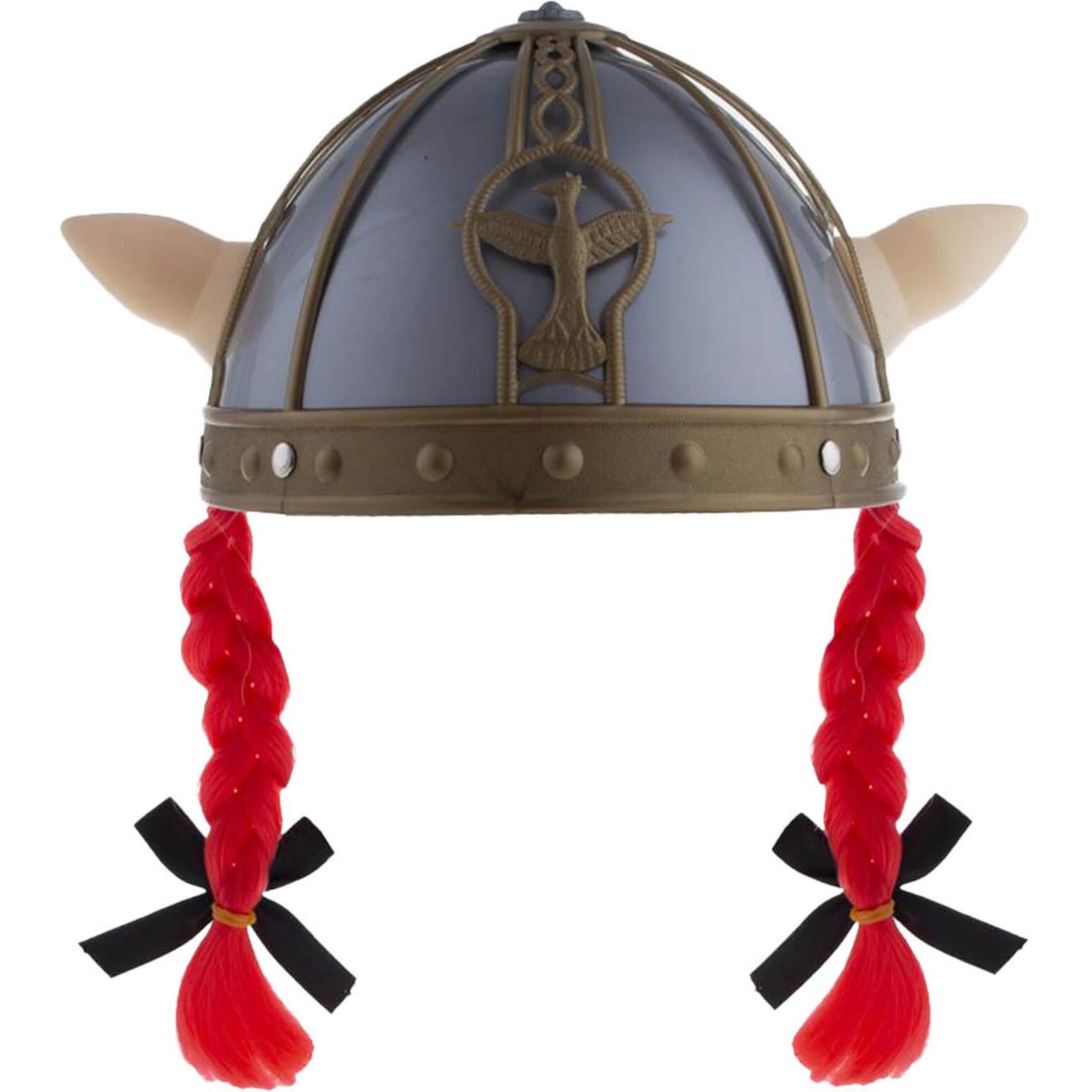 Gallier groß kräftig Helm mit Hörnern und Haaren Zöpfen silber-rot – (ARTIKEL/REFERNZ: 8712364626698/FF62669 – Kategorie/Suche: Asterix und Obelix – Hersteller: ESPA NV)