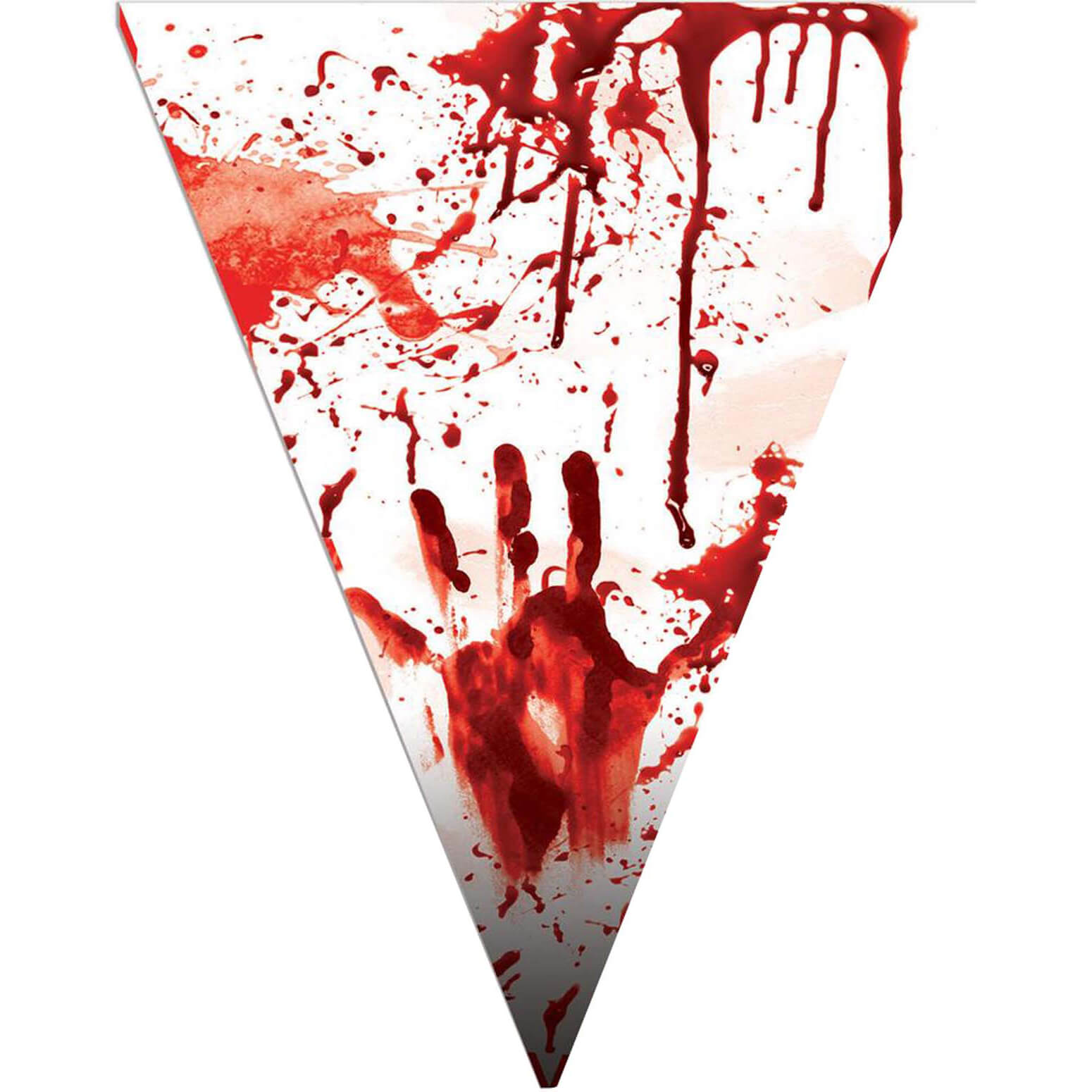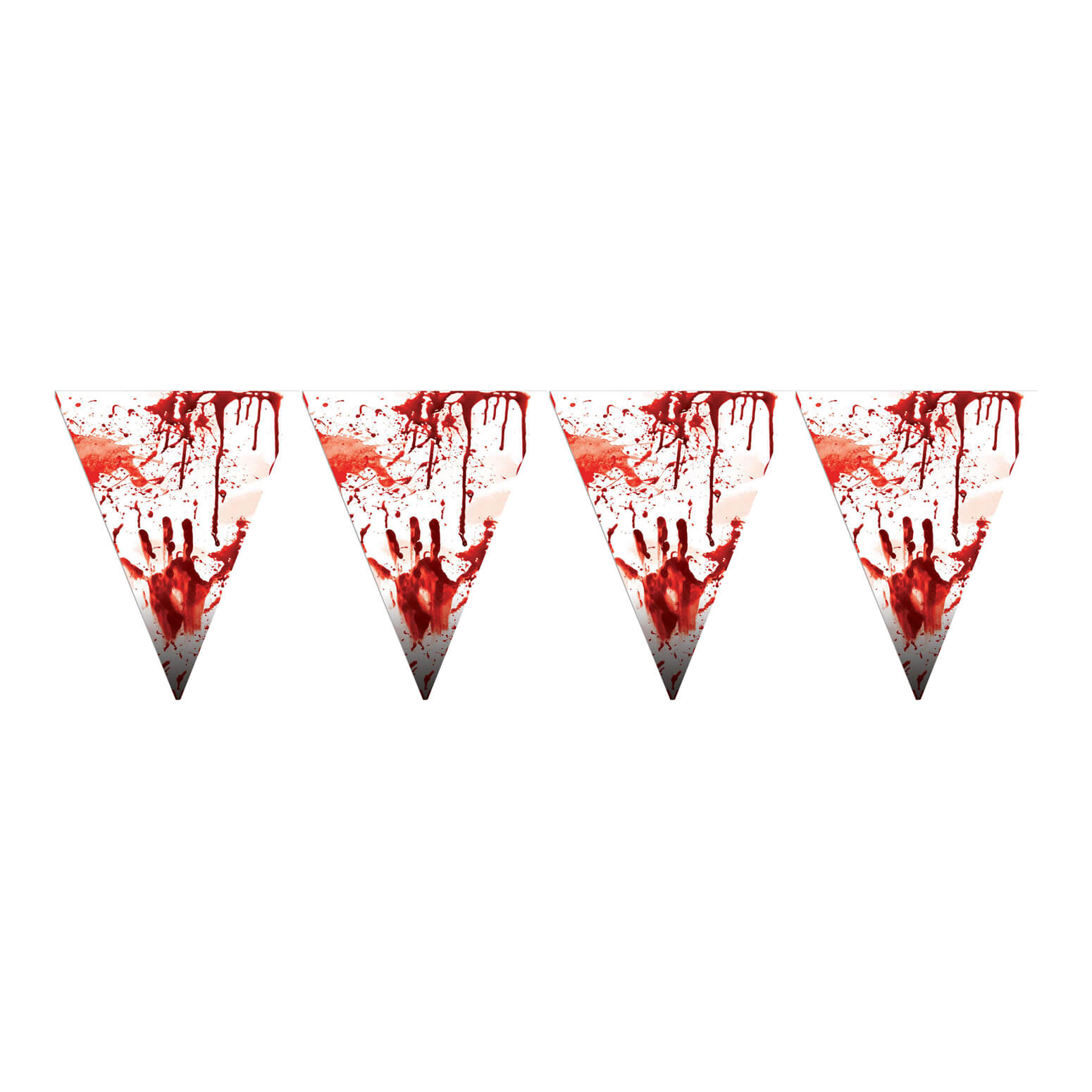 Blutige Dekogirlande Wimpelkette 500x28cm BLOODLUST mit Handabdrücken weiß-rot