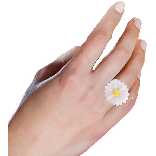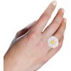 Blumen Margeriten Ring mit Gänseblümchen Blüten an silbernem Ring weiß-gelb