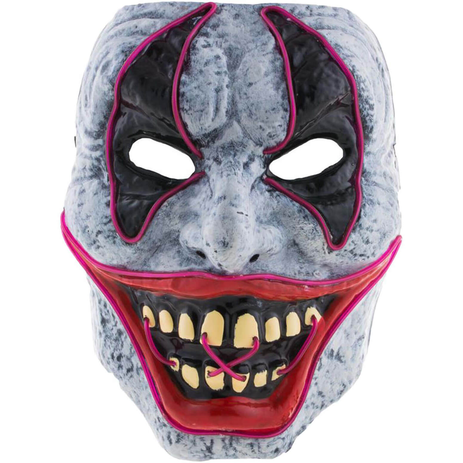 Böser Clown Kunststoffmaske mit LED ohne Batterien grau-rot