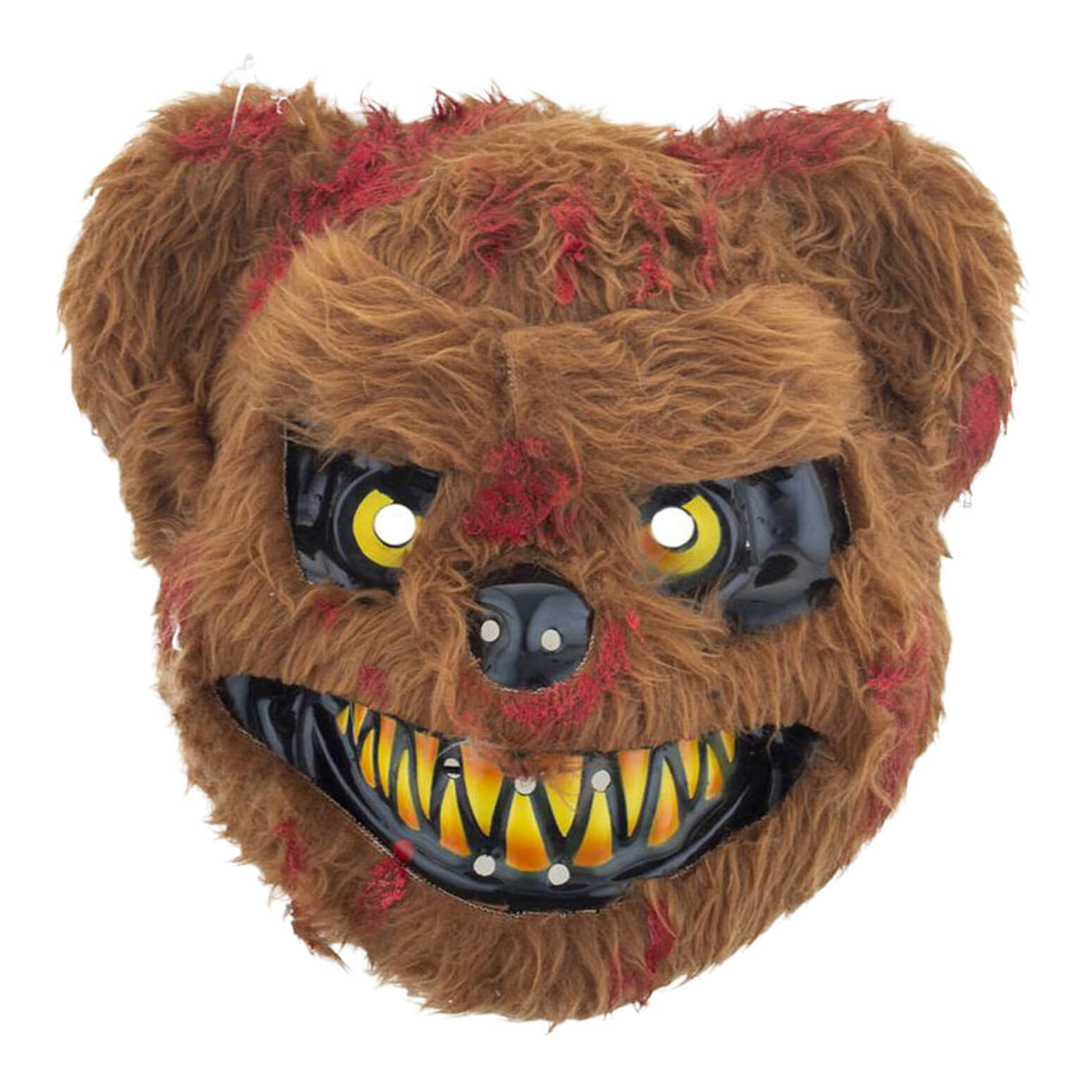 Blutiger Zombieteddybär Gesichtsmaske mit Haar Plüsch SCARY BEAR braun-rot