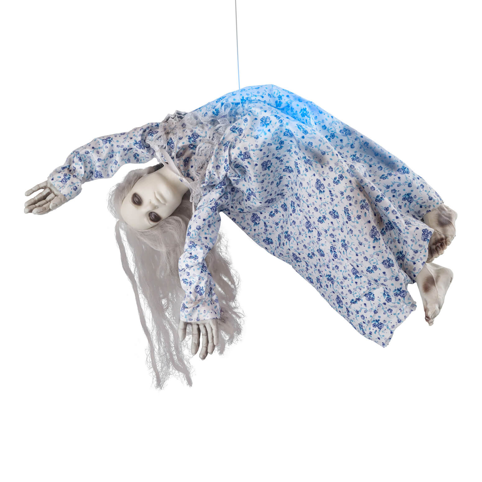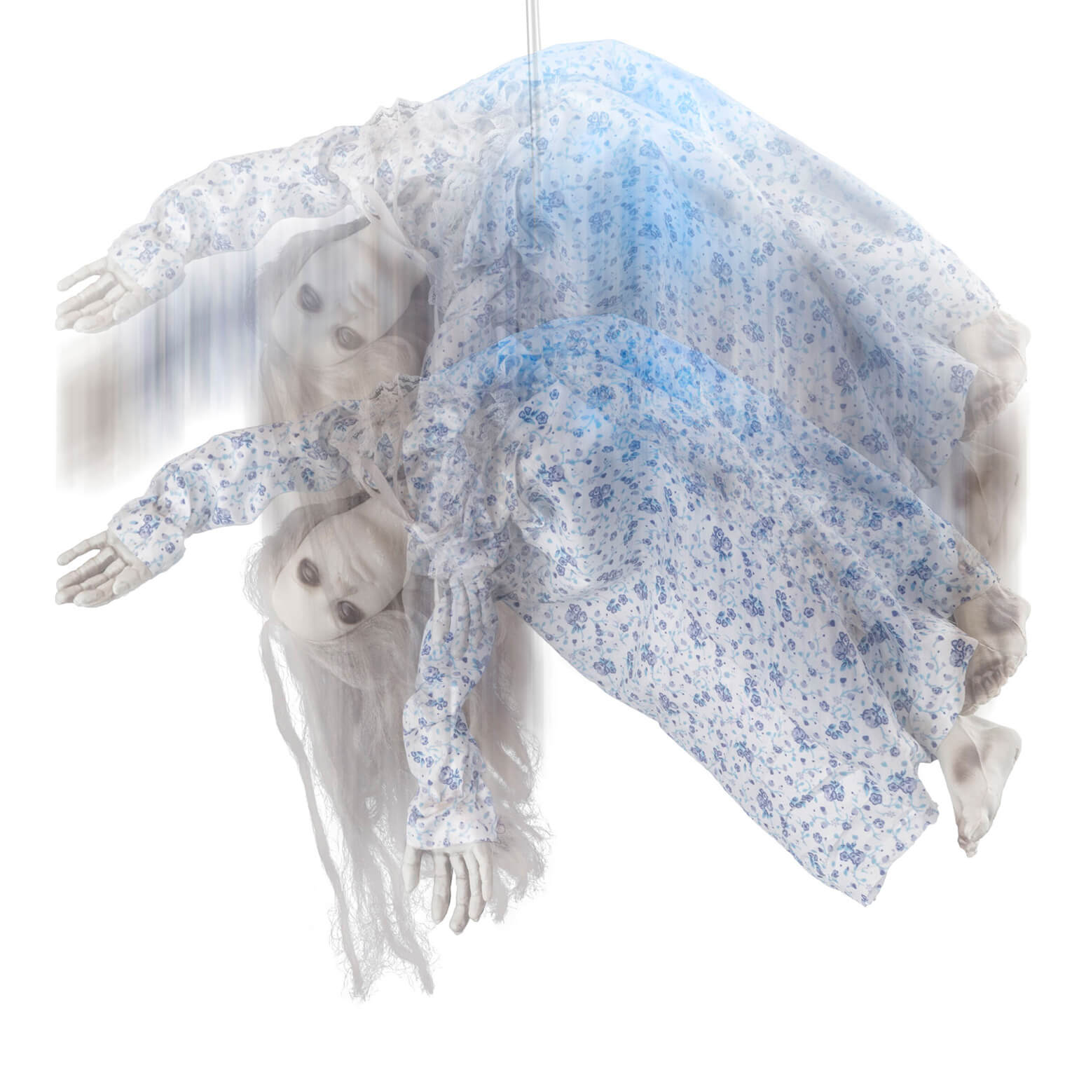 Killerpuppe Deko Hängefigur animiert+LED+Sound Floating Girl 70x10x75cm ohne Batterien hellblau