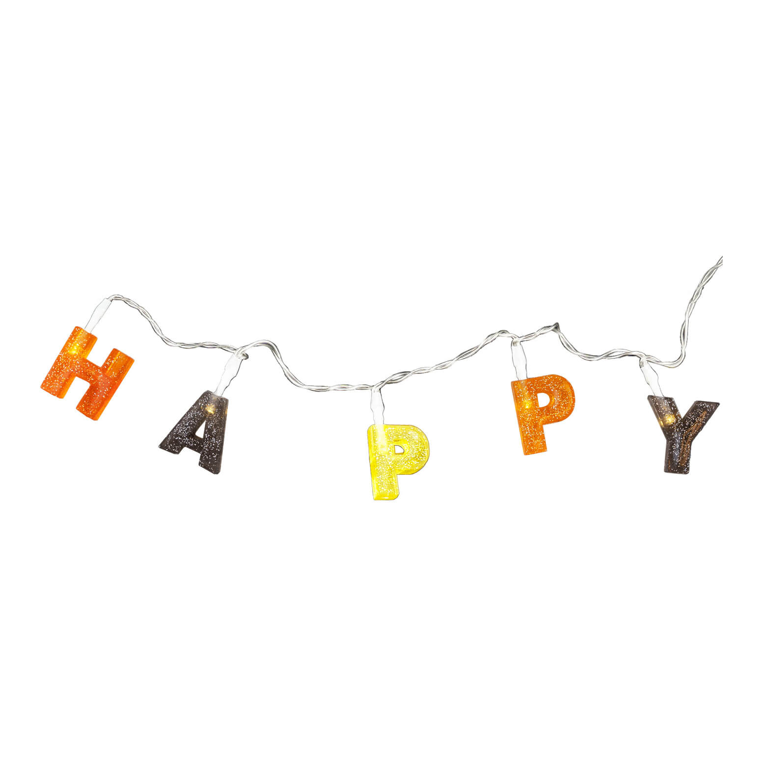 Happy Halloween Dekogirlande Lichterkette Buchstaben Lichter 150cm ohne Batterien orange-schwarz