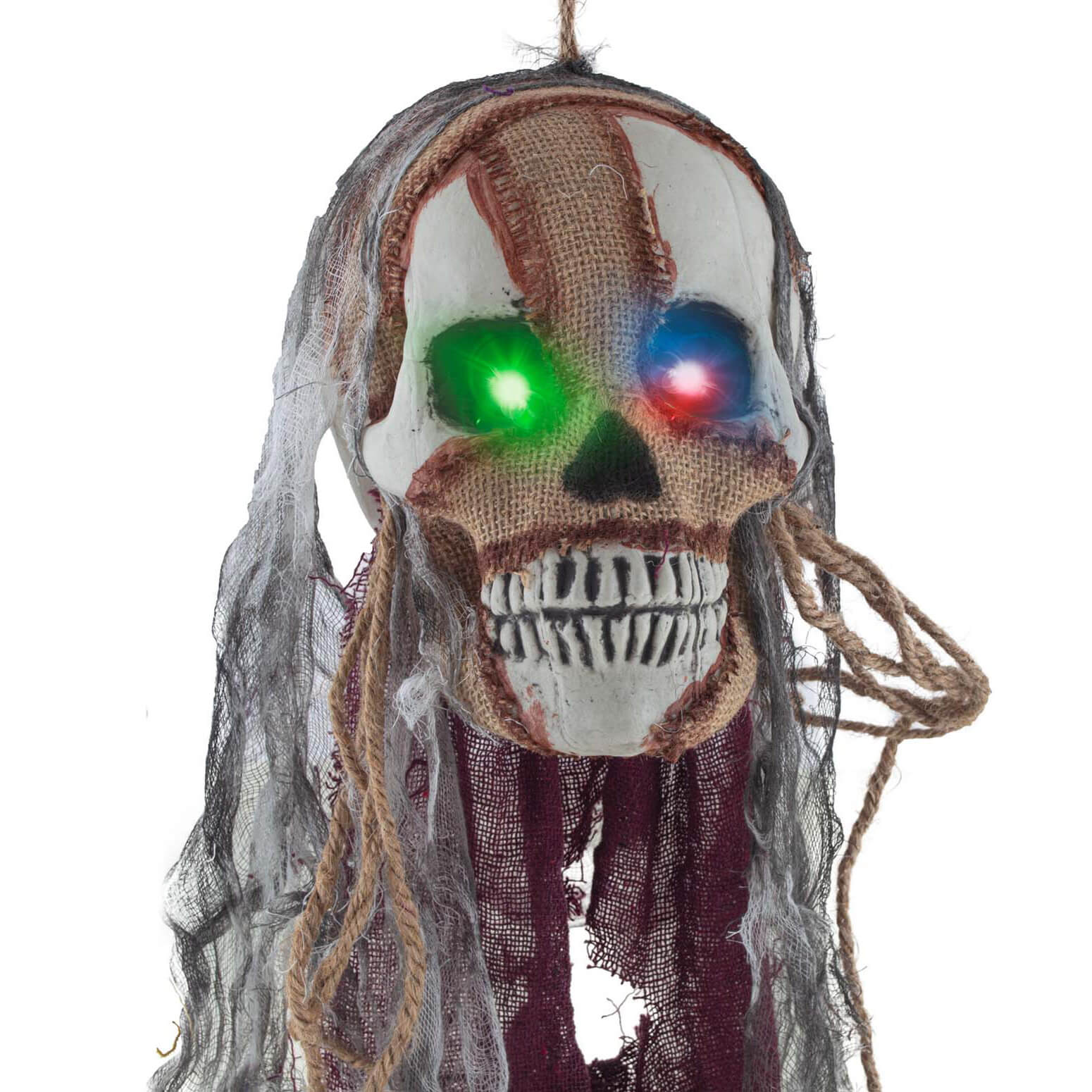 Schädel bleich Deko Hängefigur mit LED mit Blinkeaugen ohen Batterien 80cm grau-braun