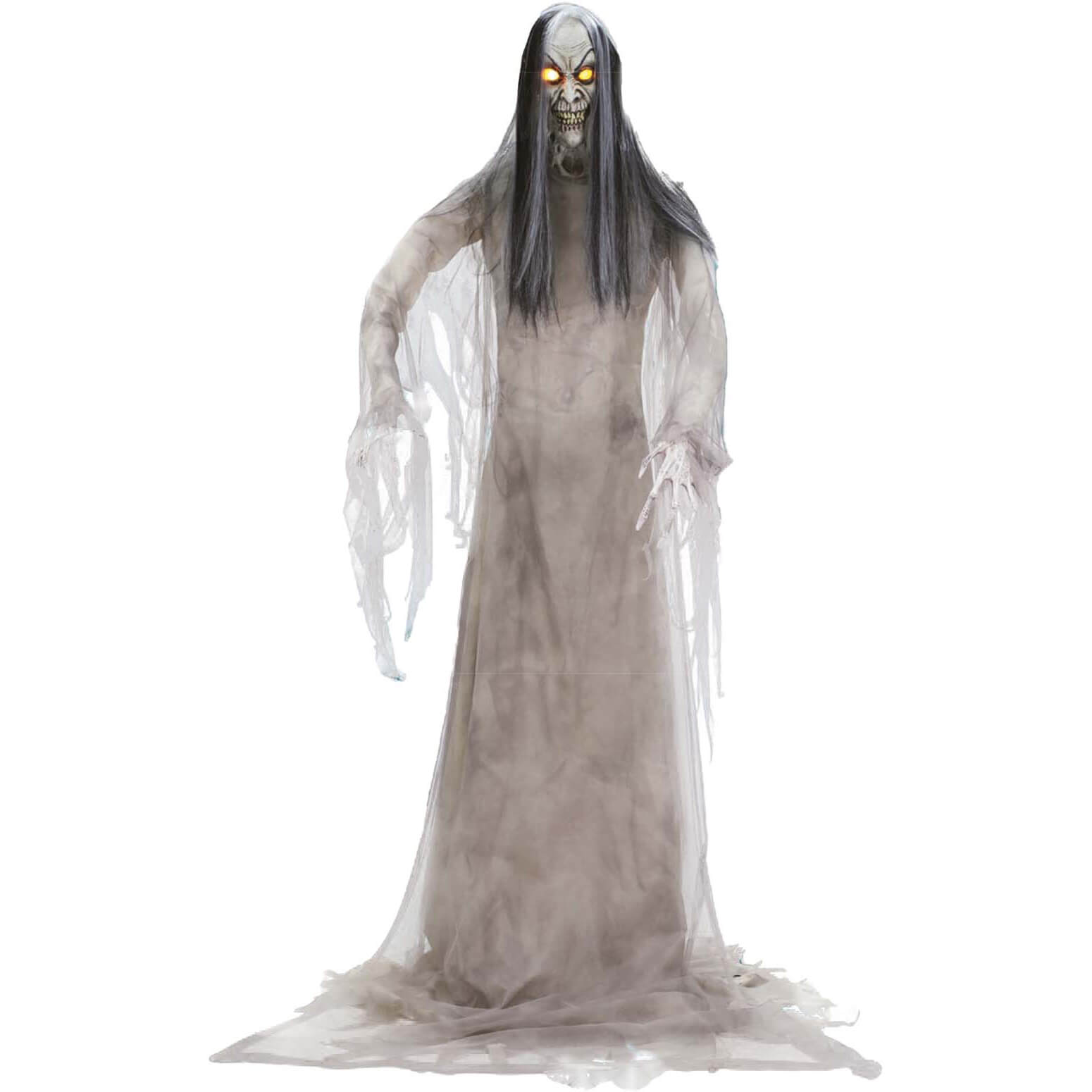 Zombiedame VL Deko Standfigur animiert+LED+Sound die weiße Frau Horrorbraut 182cm hellgrau