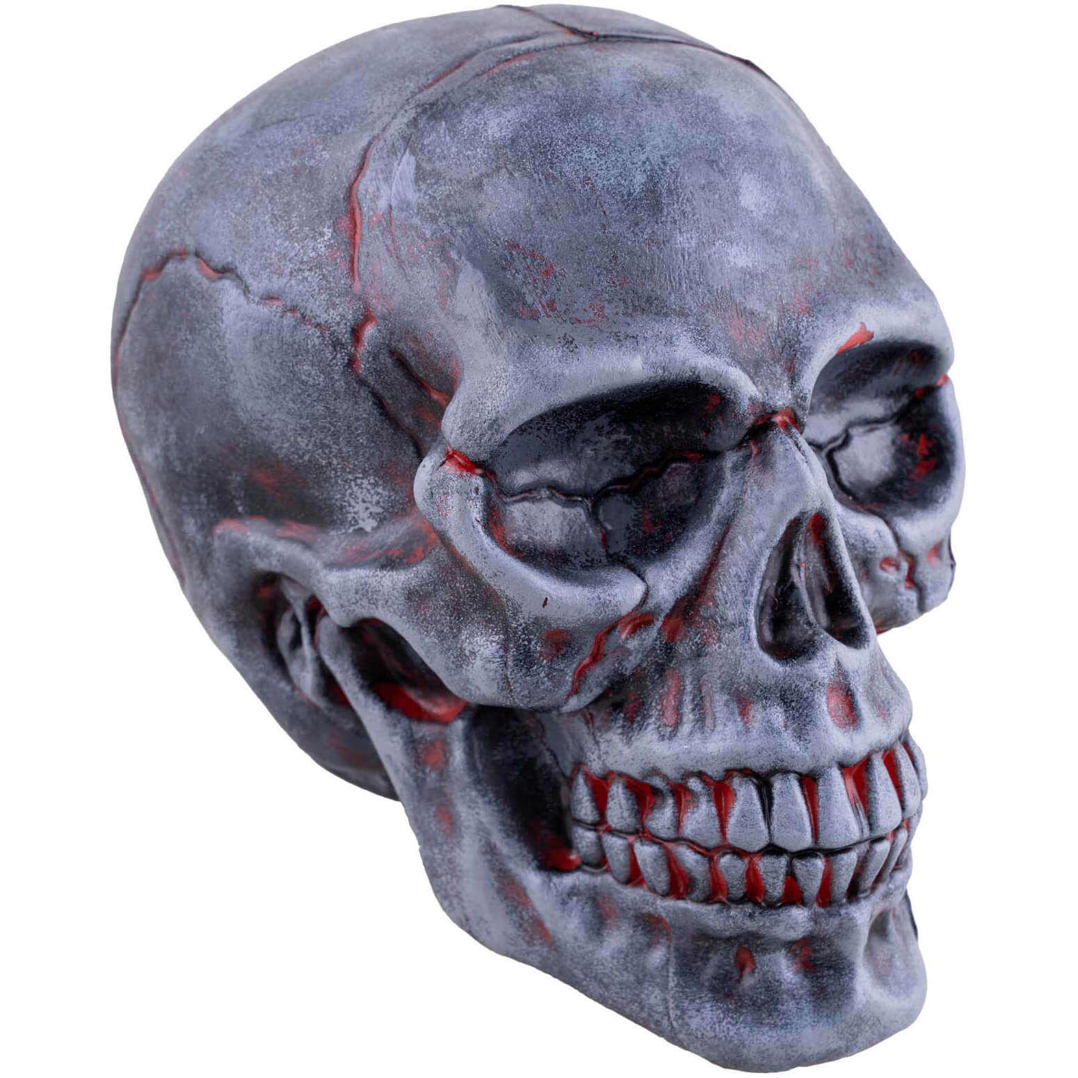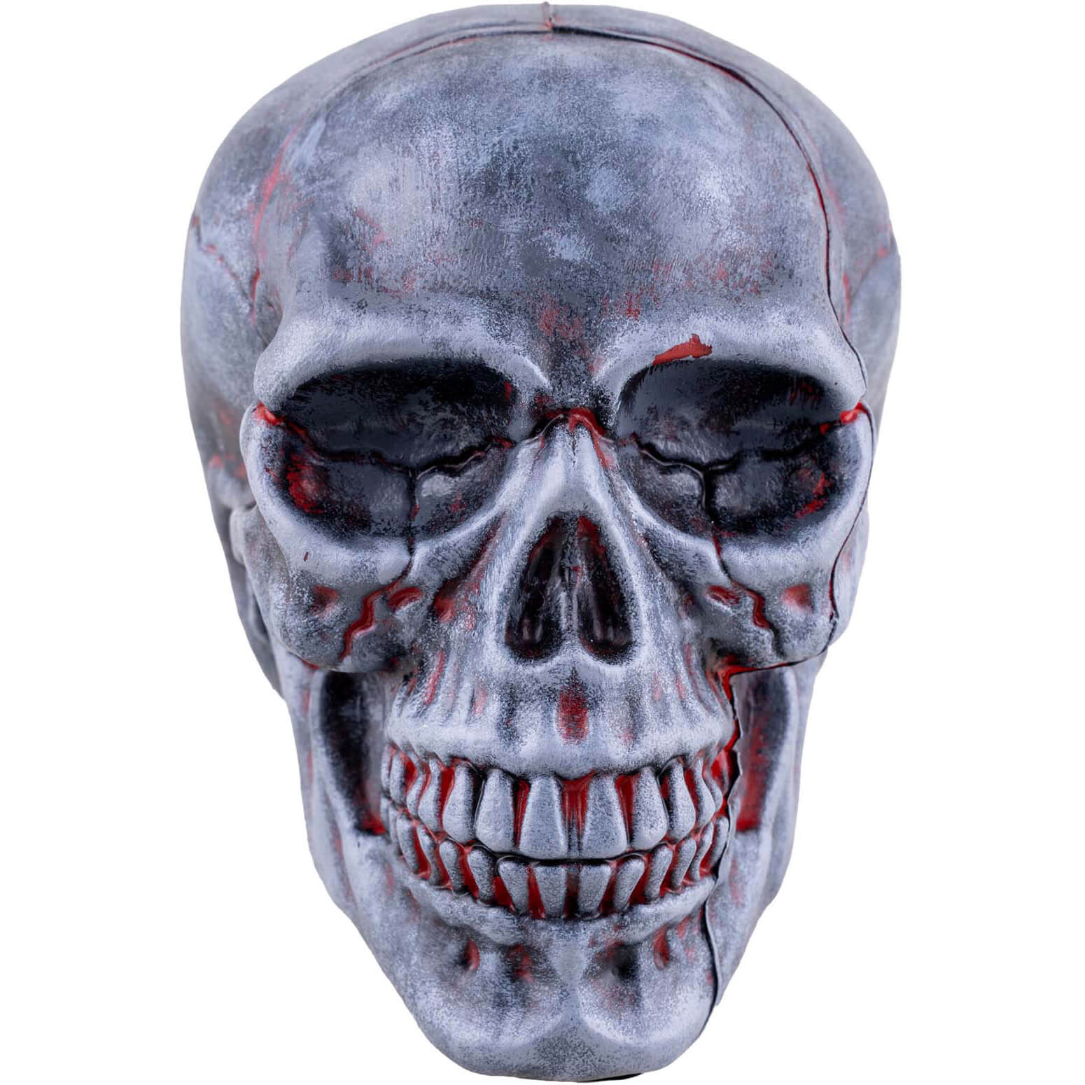 Schädel bleich Deko Standfigur mit LED rotglühend blutig 14x20x16cm ohne Batterien grau-rot