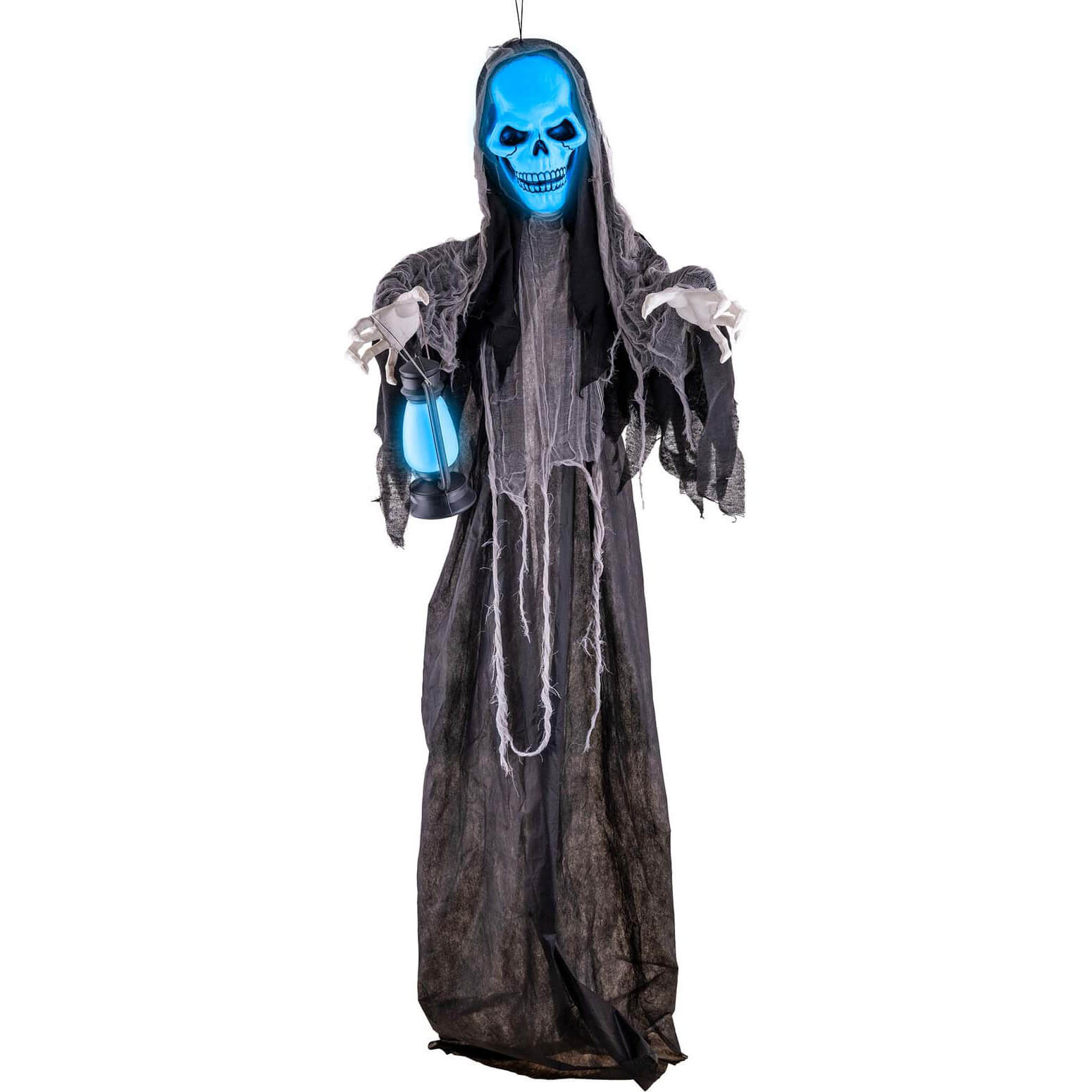Skelett Tod Deko Hängefigur mit LED+Sound mit Laterne 180cm ohne Batterien grau