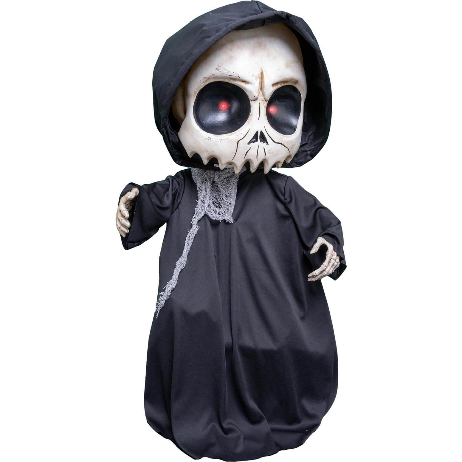 Skelett Tod Deko Standfigur animiert+LED+Sound GRIM RUPERT 90cm schwarz-weiß