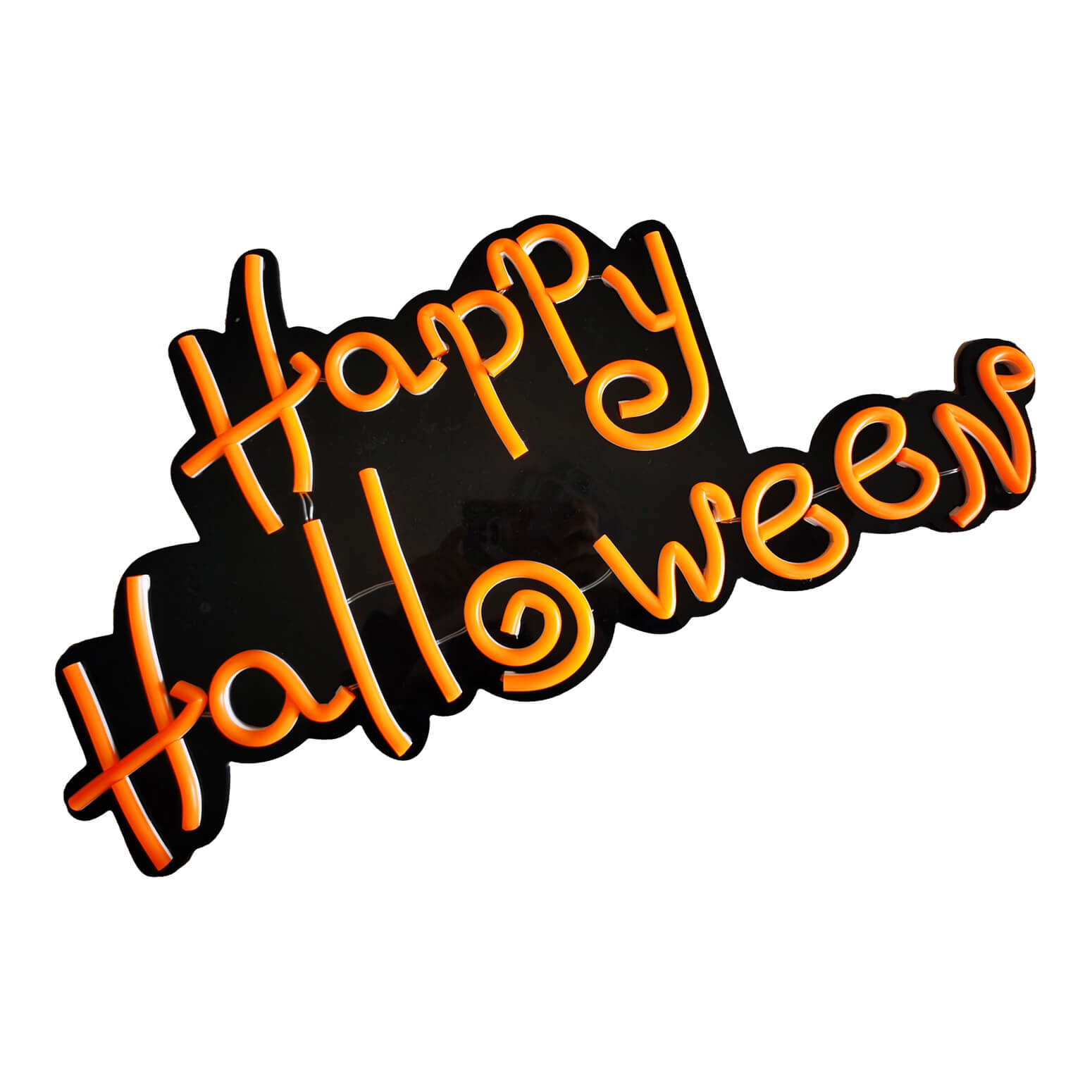 Happy Halloween Deko Wandbild mit LED 60x30cm neonorange