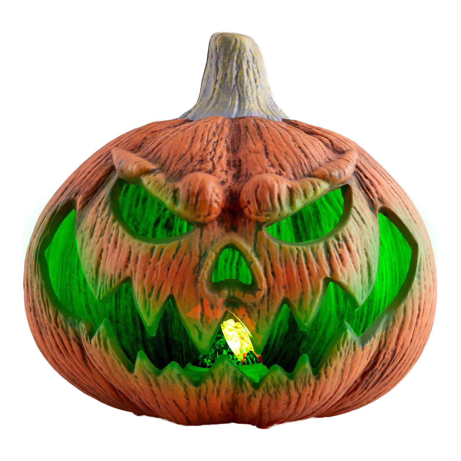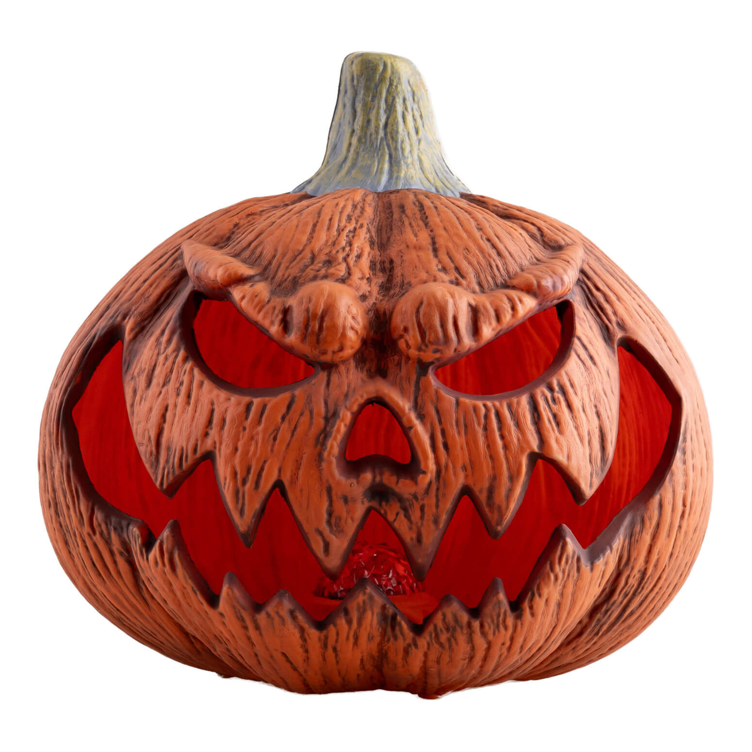 Kürbis Deko Standfigur mit LED+Sound lachender Kürbis 44cm LAUGHING PUMPKIN orange