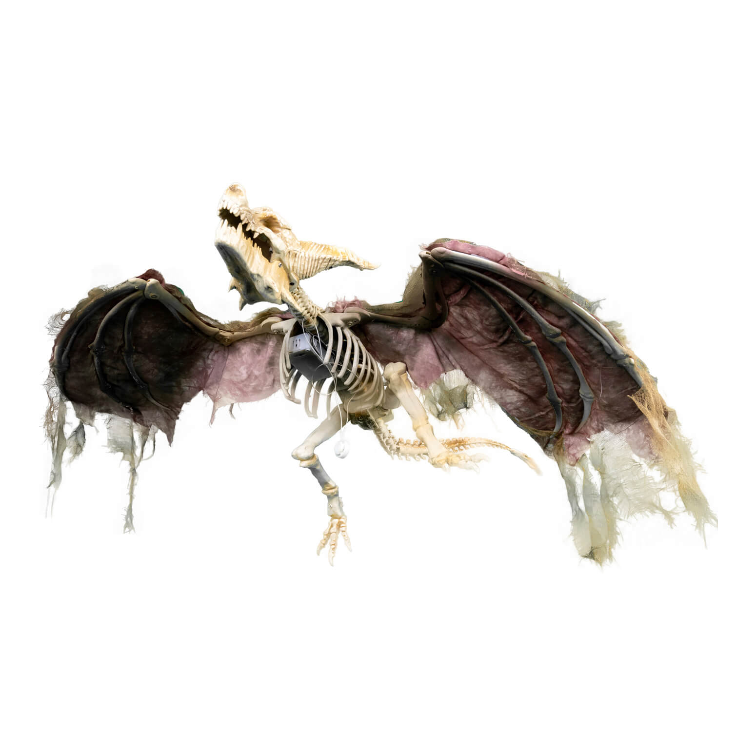 Drache Dinosaurier Deko Standfigur mit LED+Sound Tierskelett mit Geräuschen 90cm FLYING DRAGON beige