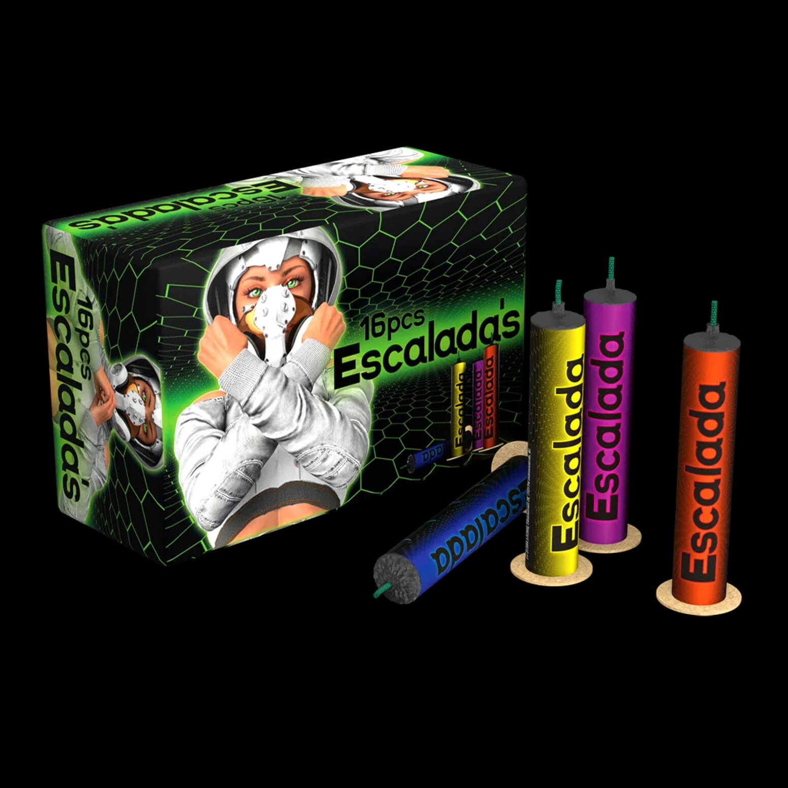 Jugendfeuerwerk Escalada’s – Superfette Pfeiffontänen mit Crackling und jeweils einer anderen Grundfarbe, Wow!- Kaliber: