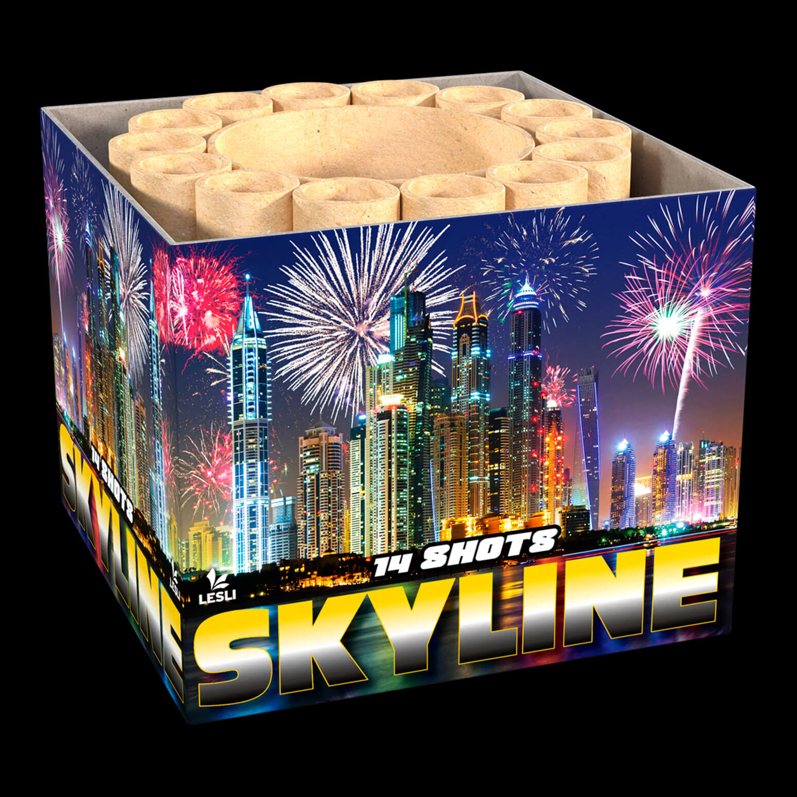 Aktuelle Warenbestände bitte telefonisch erfragen: Batteriefeuerwerk Skyline LESLI BATTERIEN – Spitzenklasse-Batterie mit 4 verschiedenen Effekten und 14 Schuss. Das macht Spaß! – (8714365041357/LS04135 Kategorie: ) – Lesli Silvesterzauber GmbH