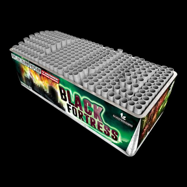 Batteriefeuerwerk Black Fortress – Verbundfest! Die Festung hält stand, 274 Schüsse lang, schöne Effekte in I, V und W-Form. Eine klasse Box, die Sie 2 Minuten lang genießen können. Fast 2 Kilo Pulver!- Kaliber: 20 mm